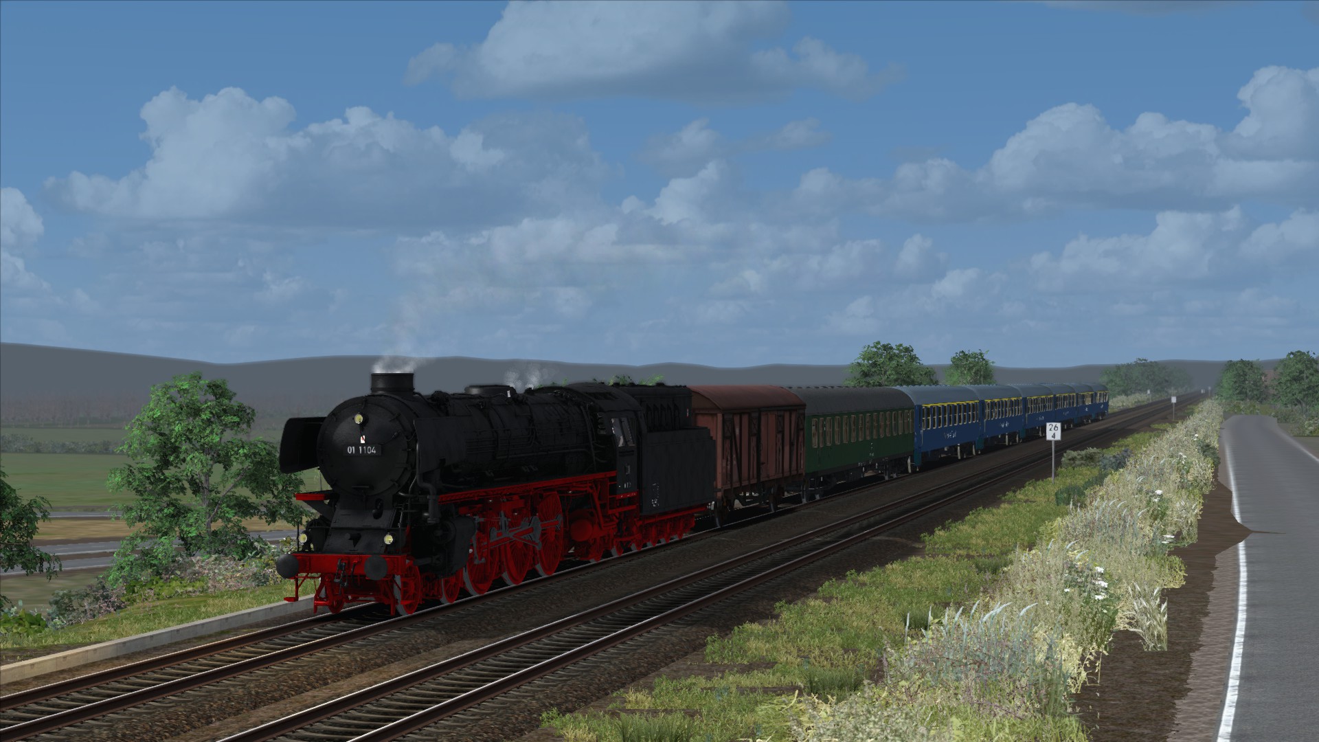 Du fährst heute den IGE Jubiläums-Sonderzug anlässlich vom 75. Geburtstag des Eisenbahn-Romantik Moderatoren Hagen von Ortloff. Die Fahrt beginnt mit der E10 228 der DBK in Stuttgart und führt zunächst nach Nürnberg. Dort wird auf der imposanten Schnellzugdampflok 01 1104 gewechselt. Ab Nürnberg führt die Fahrt dann durch das Pegnitztal und Marktredwitz bis nach Hof. Ab dort geht es dann über der Franken-Sachsen Magistrale bis Zwickau. Im ersten Teil fährst du die 01 von Nürnberg bis Schnabelwaid und im zweiten Teil von Marktredwitz bis Hof/Plauen.