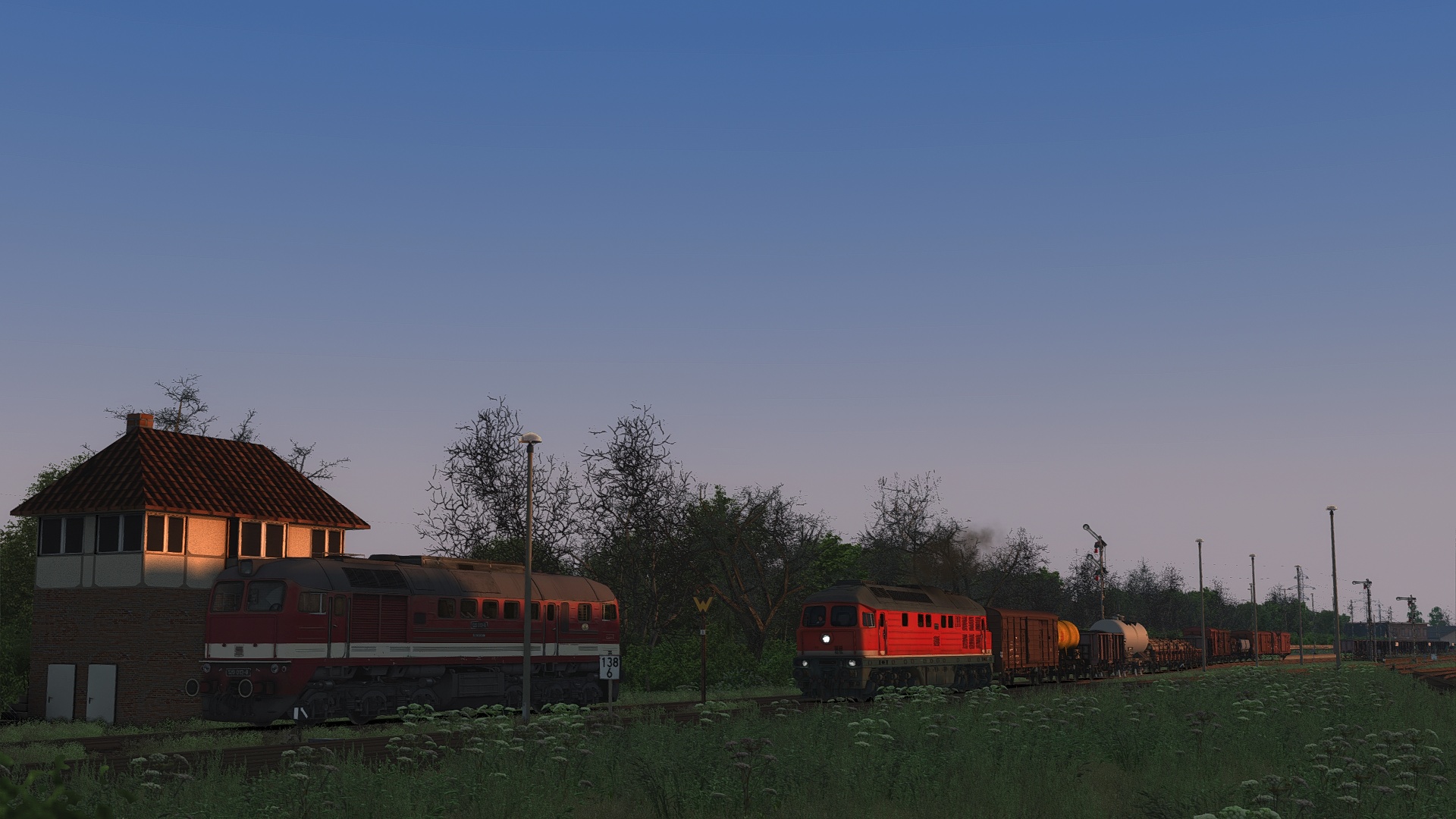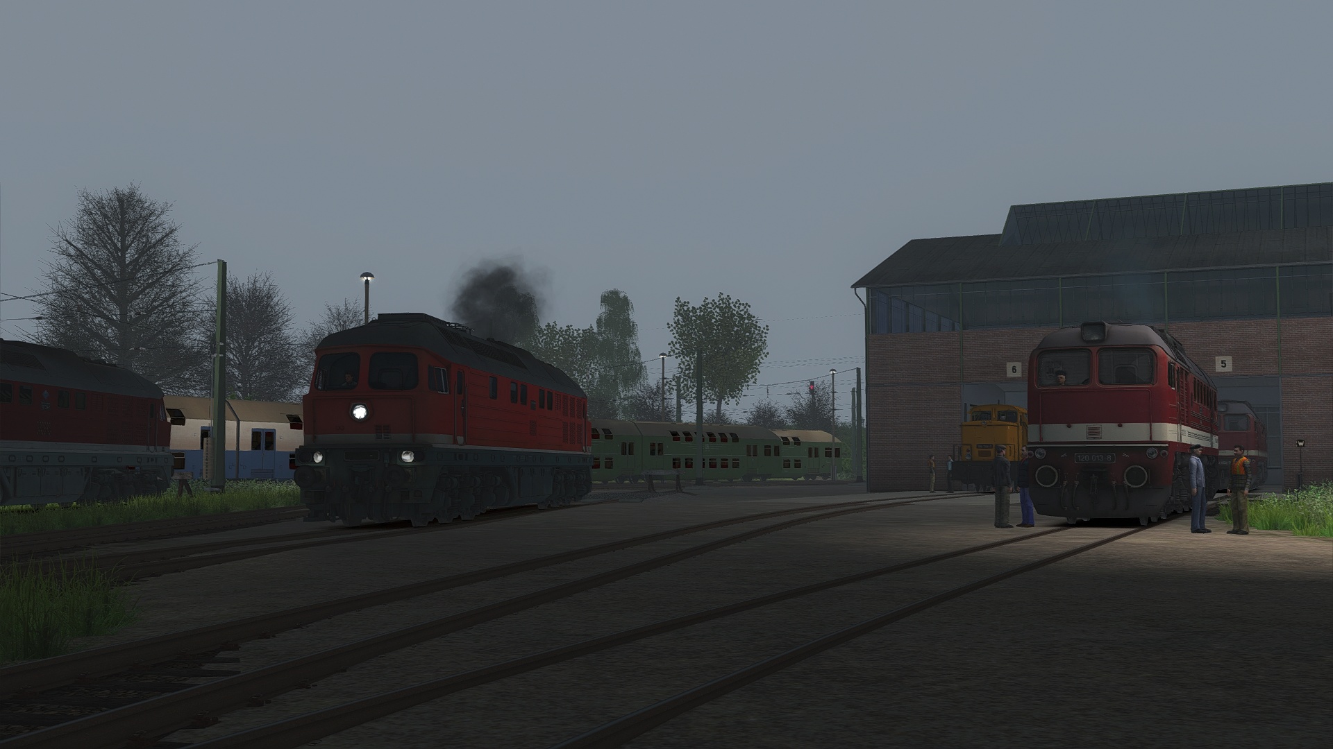 Ich habe mir auf meinem Rechner alle Weatherblueprints gelöscht, so dass nur auf auf AP\WeatherEP und Kuju\RailSimulatorCore ("1. Clear", "2.Cloudy", etc - für QD verwendet aber global verwendbar, wer AP hat kriegt bei diesen AP Wetter wer nicht sein Kuju Wetter) zugegriffen werden kann. Sehr schön hier im dichten Nebel zu beginnen der dann aufklart.