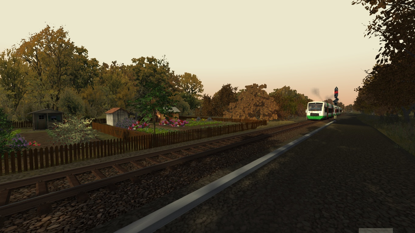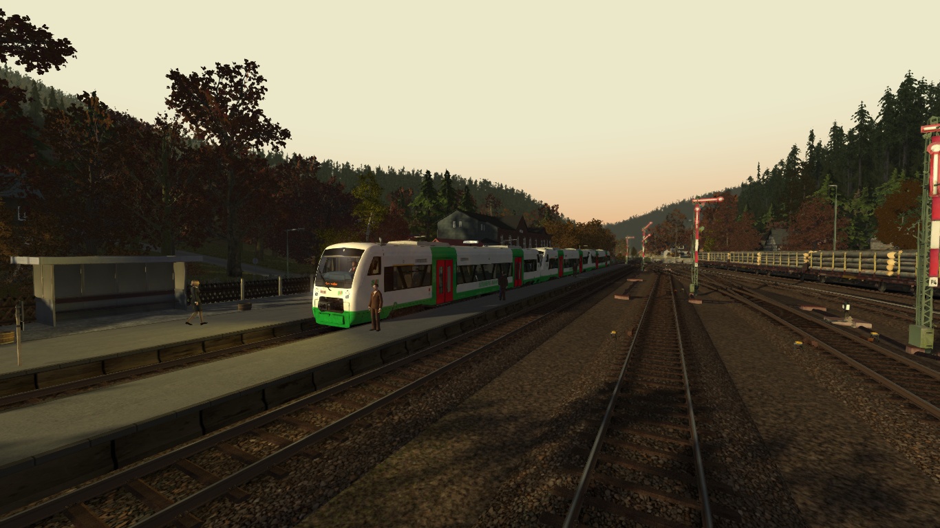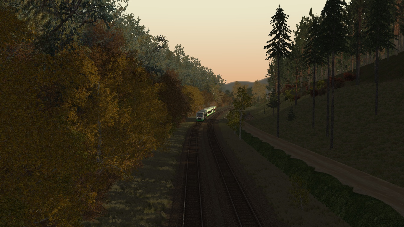 fahre an einem schönen Herbst Spätnachmittag das fiktive Szenario mit der Regionalbahn von Vienenburg nach Claustahl Zellerfeld.