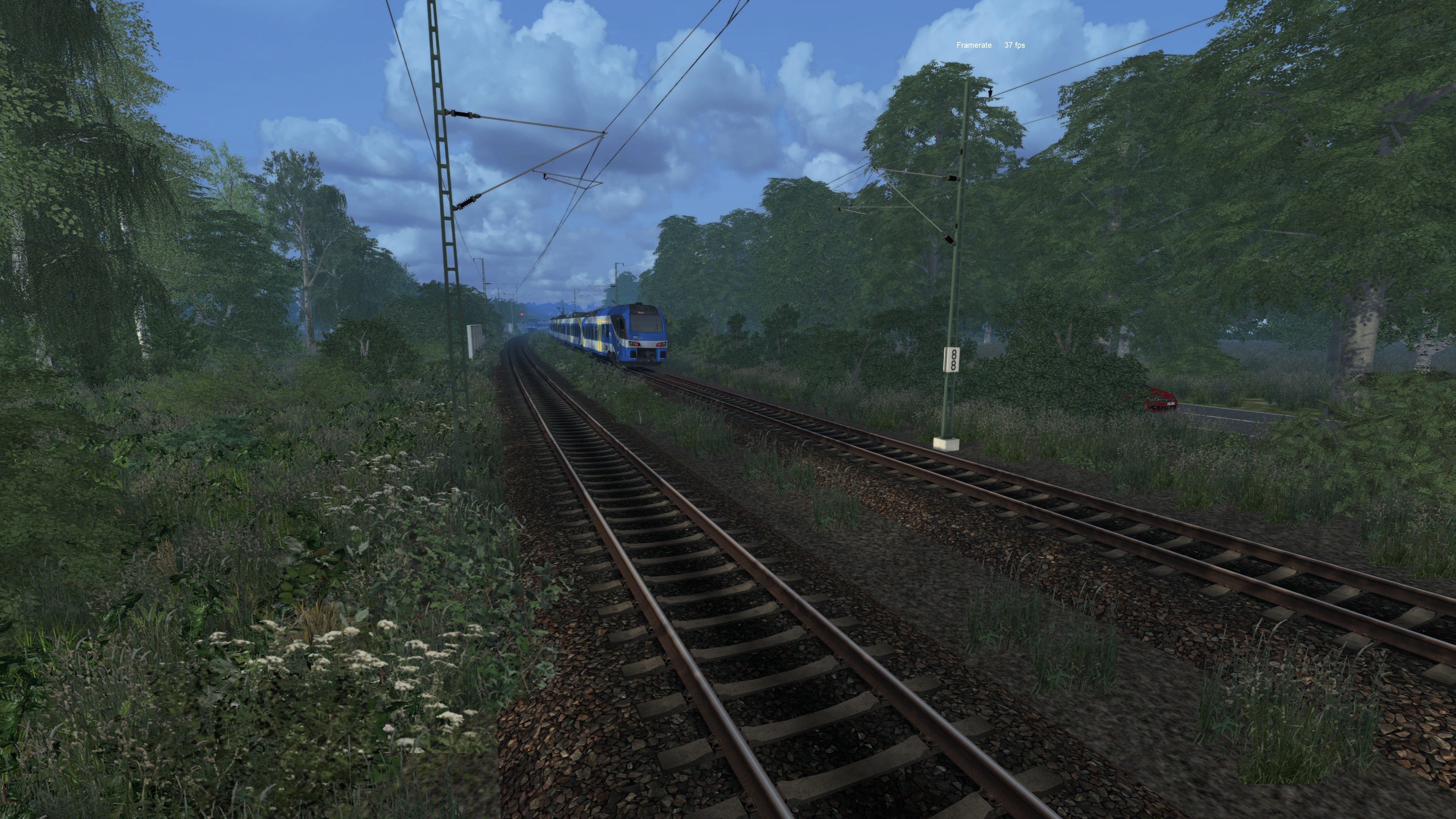 Wichtige Anmerkung wegen der Vielzahl der verwendenden Provider. Auf der Strecke wurde die Vegetation nur bzw. in unmittelbarer Nähe am Gleis komplett ausgetauscht bzw. hinzugefügt und an freien Stellen etwas weiter gesetzt, um die fbs relativ hochzuhalten. Es wurden Schallschutzwände, Bahnübergängen eingefügt, Bahndamm-Loft Objekte ausgetauscht.