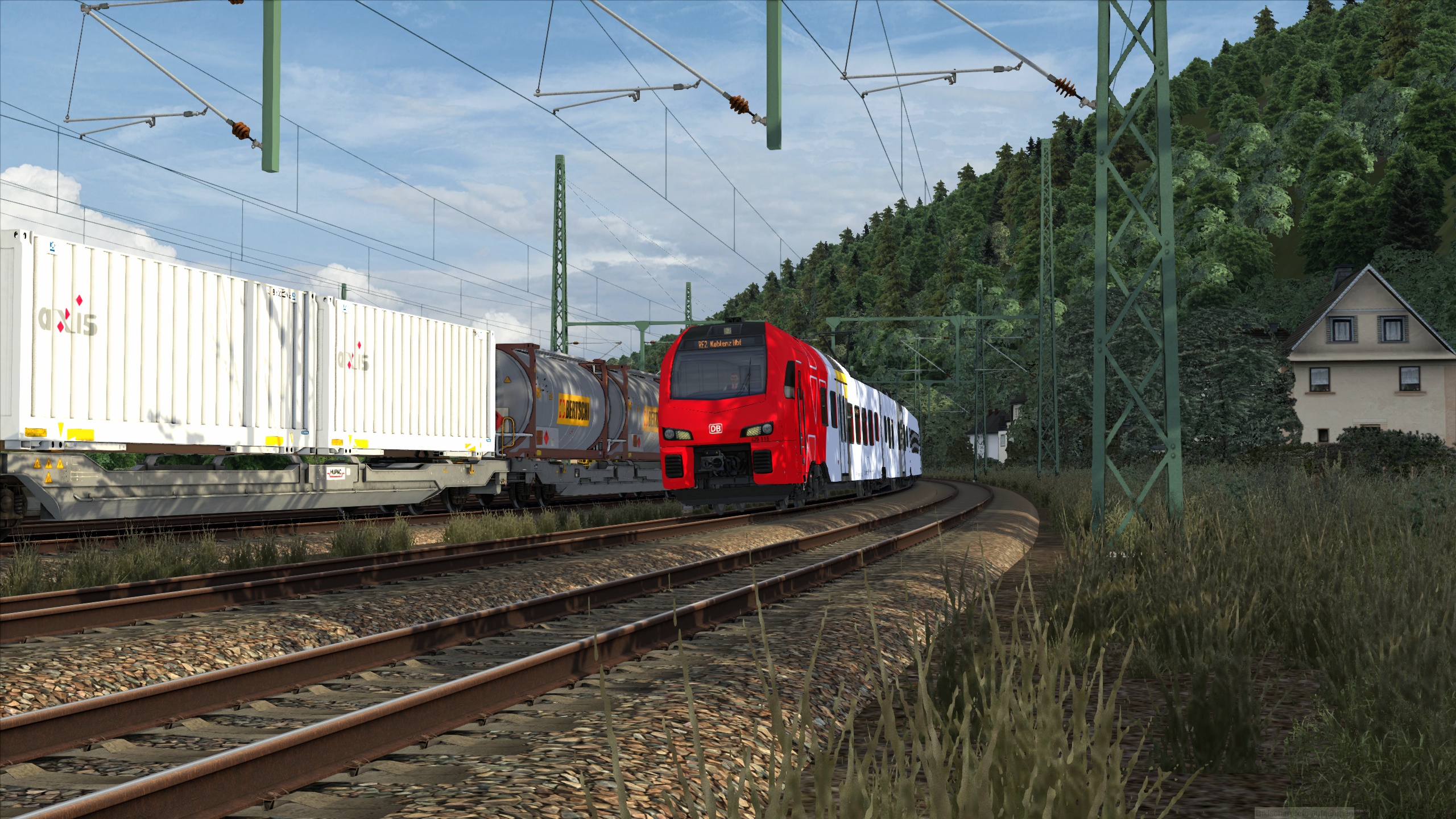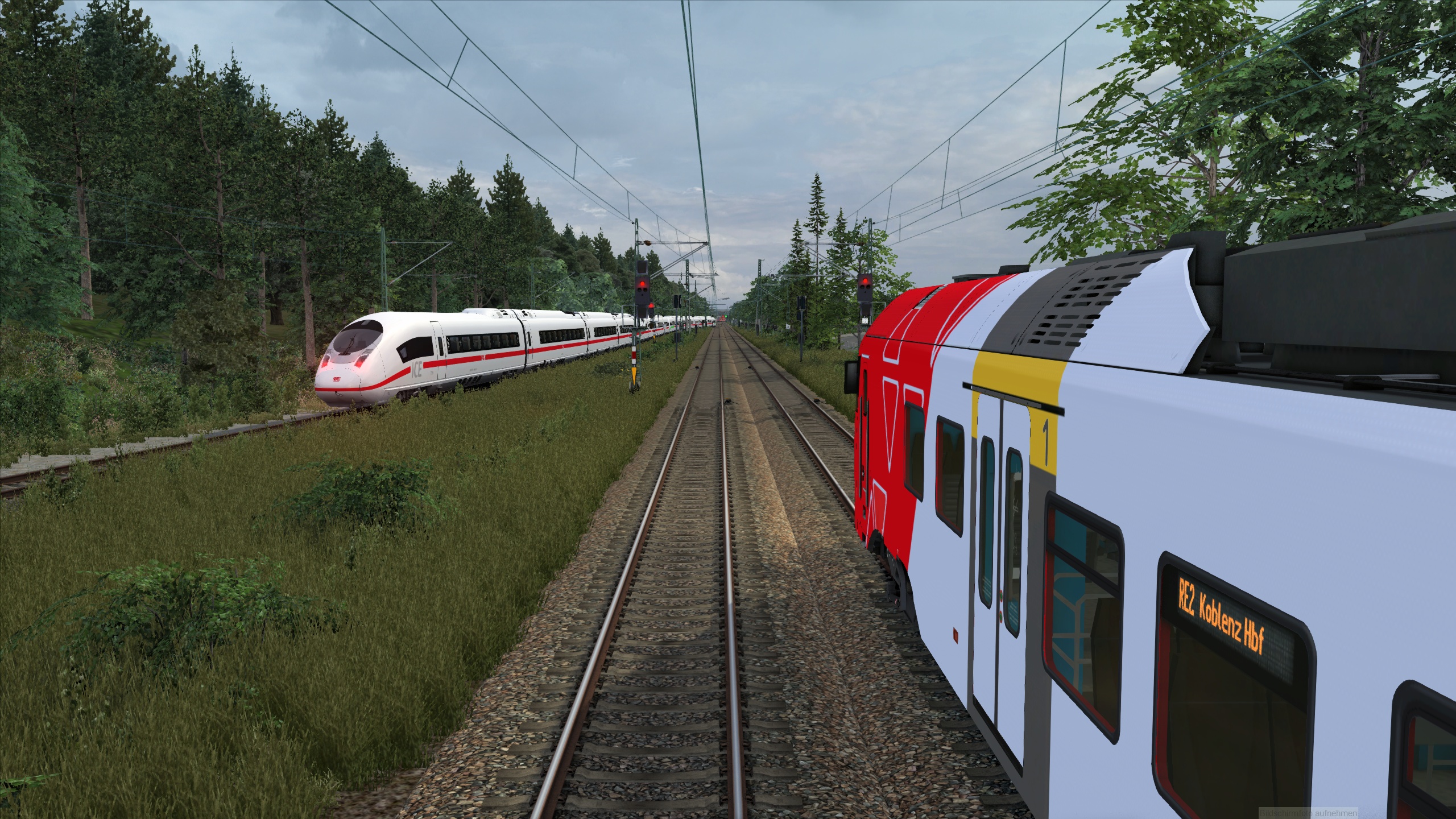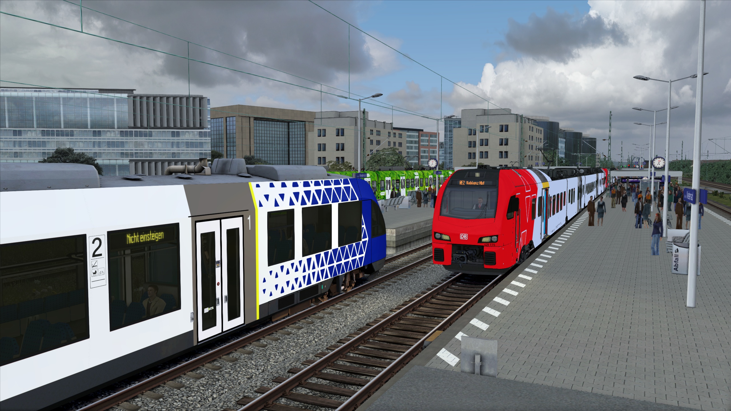Du fährst heute den einizgen RE2, welcher planmäßig ab Koblenz weiter als RE1 und später bis nach Mannheim verkehrt. Aufgrund der Verspätung aus vorheriger Fahrt wirst du deine planmäßige Abfahrtszeit allerdings nicht einhalten können. Grund dafür ist unter anderem eine andauernde Streckensperrung auf der Schnellfahrstrecke zwischen Köln und Frankfurt, weshalb nun sämtlicher Fernverkehr über die Strecke am Rhein umgeleitet wird. Versuche trotzdem so zügig es geht zu fahren, um dich nicht unnötig zu verspäten.