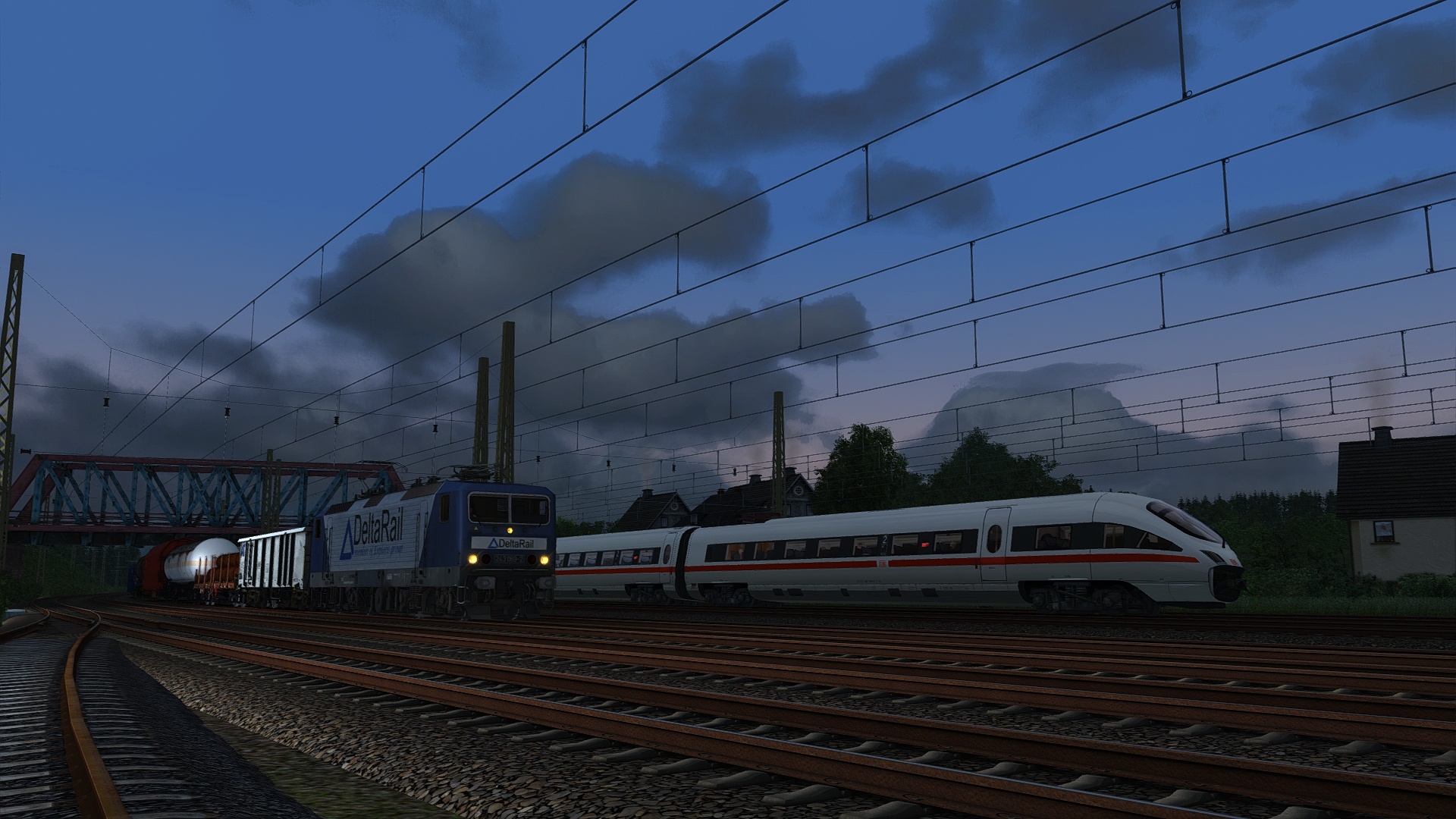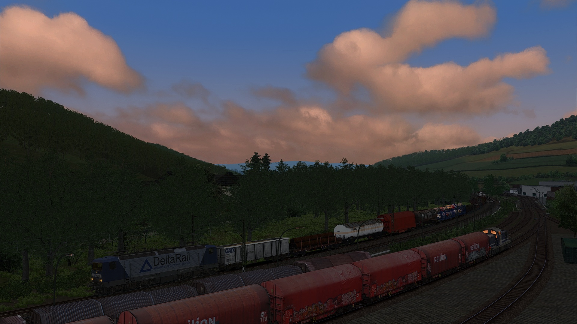 Schöne Fahrt mit interessanter Lok in den Sonnenuntergang - wunderbar stimmungsvoll mit AP-Wetter - Danke dafür aus Hamburg! Das Strecken-Update kommt dabei gut zur Geltung, die neue Signalisierung ist super geworden. Nur die Oberleitung aus Original Kuju-Zeiten wirkt noch etwas anachronistisch...