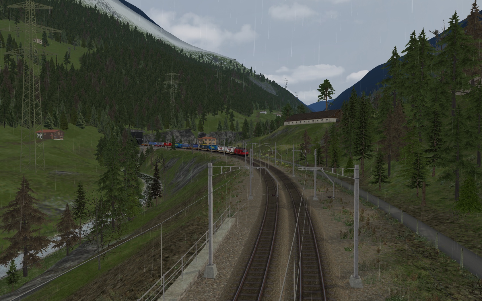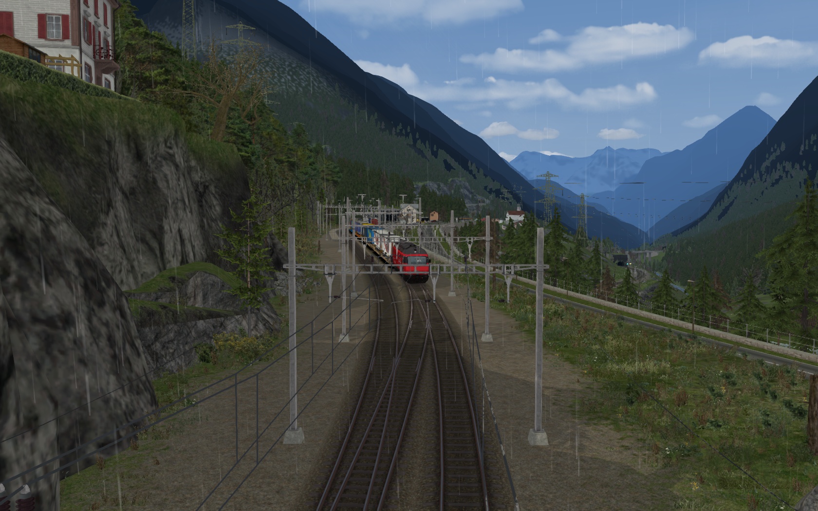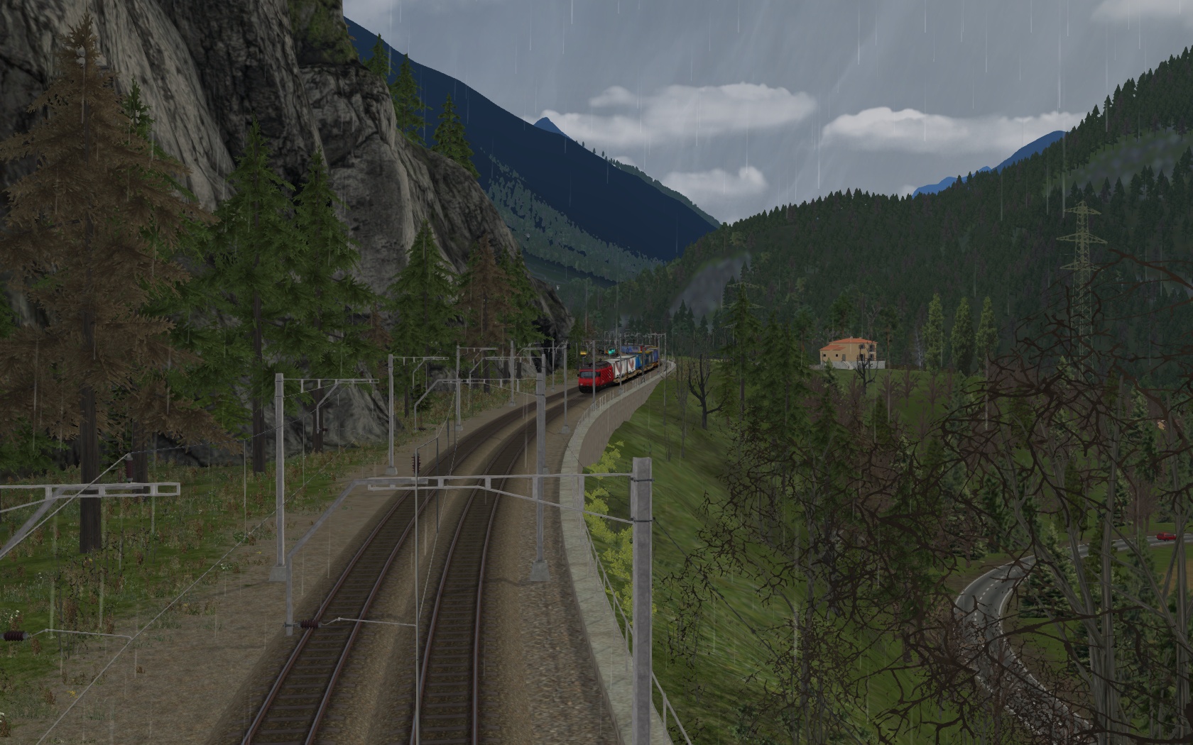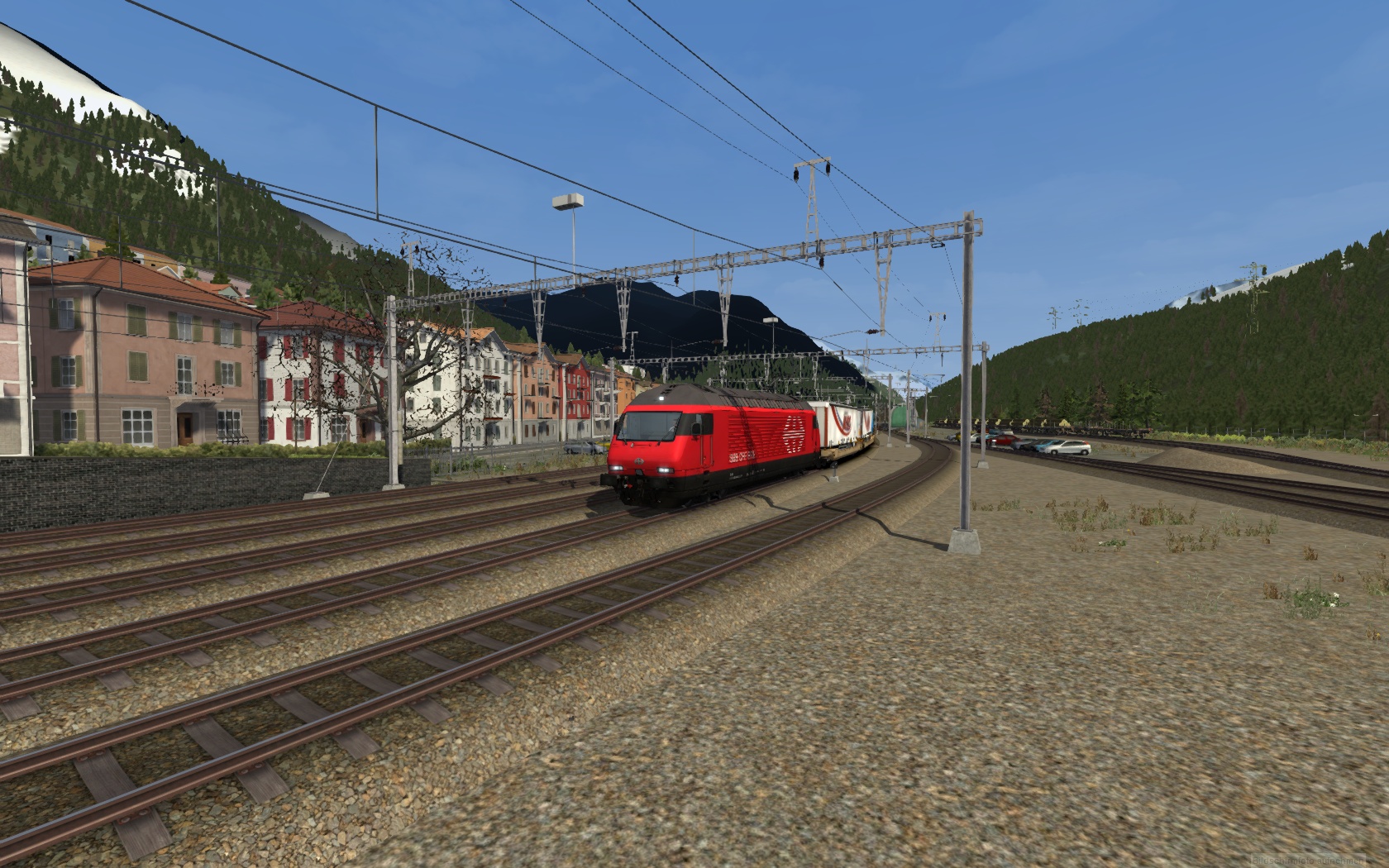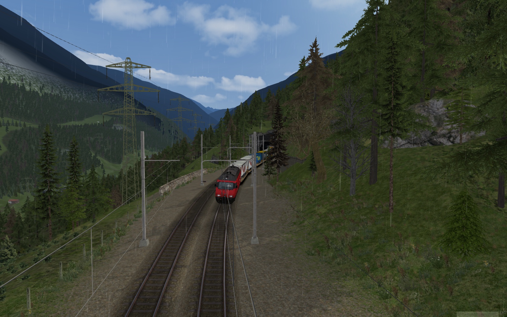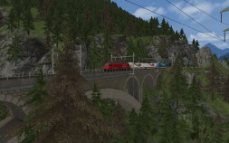 fahre an einem Frühlingstag eine Sattelauflieger Zug mit der RE 460 Zuglok von Airolo nach Erstfeld durch den Gotthard Tunnel und die Nordrampe abwärts.