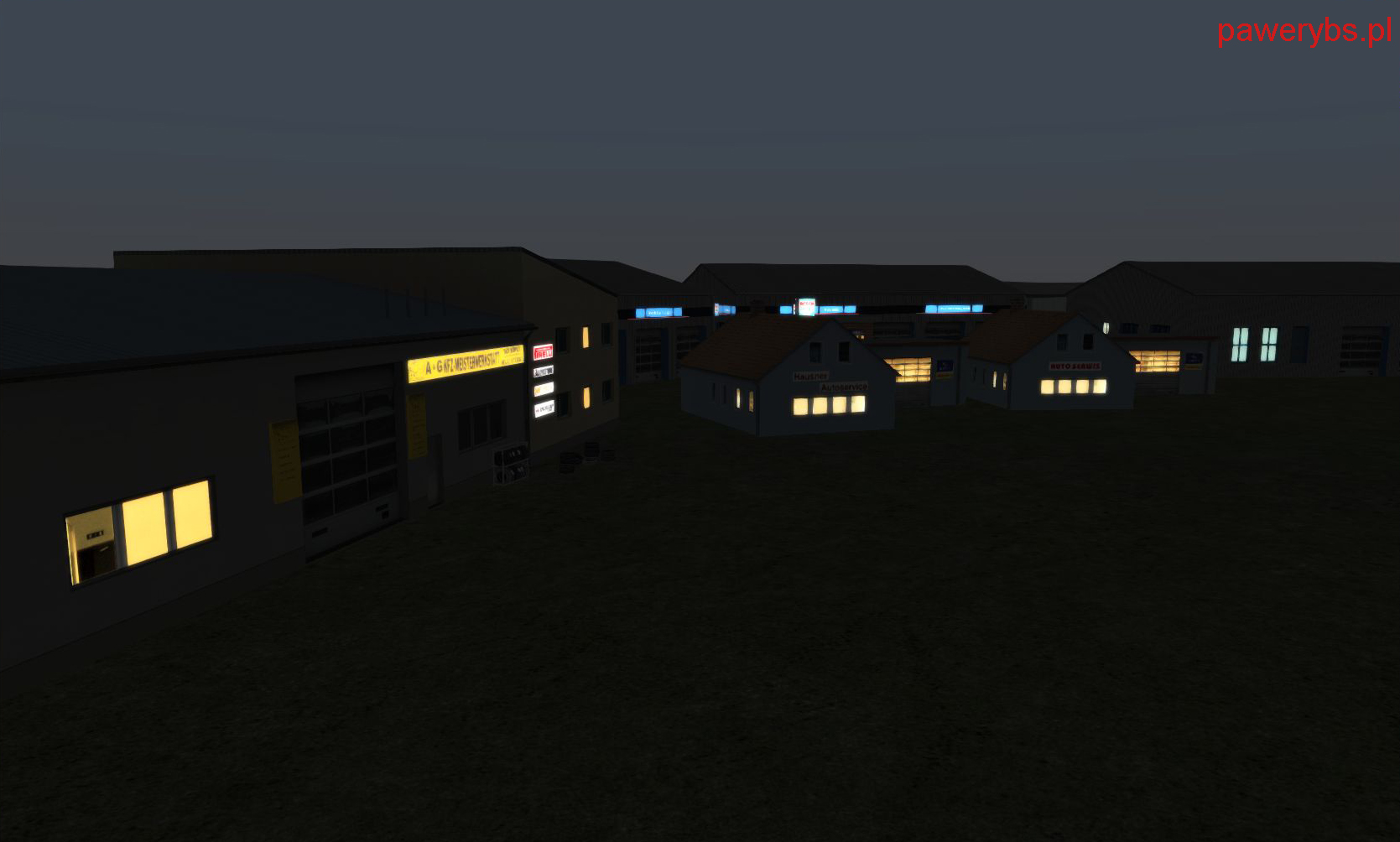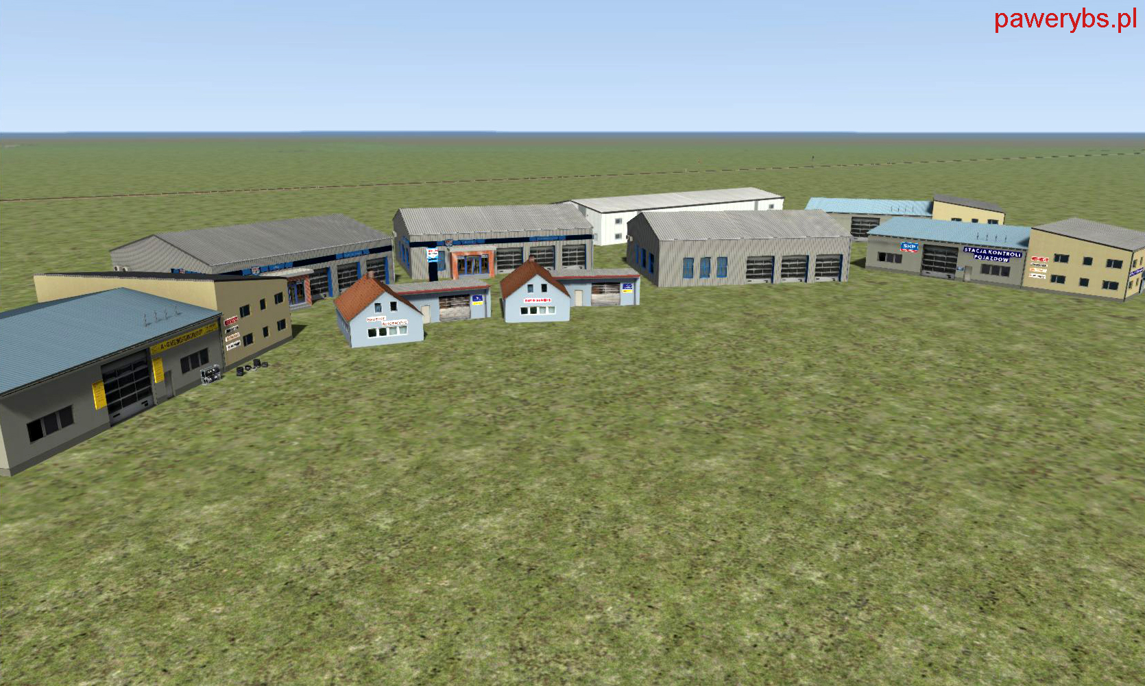 EN: The package contains 9 highly detailed models of industry buildings (with one board) in the category "Industry" and 3 objects (a set of car tyres) in the category "Clutter" for a free use in Train Simulator. All objects have day, night and winter textures.