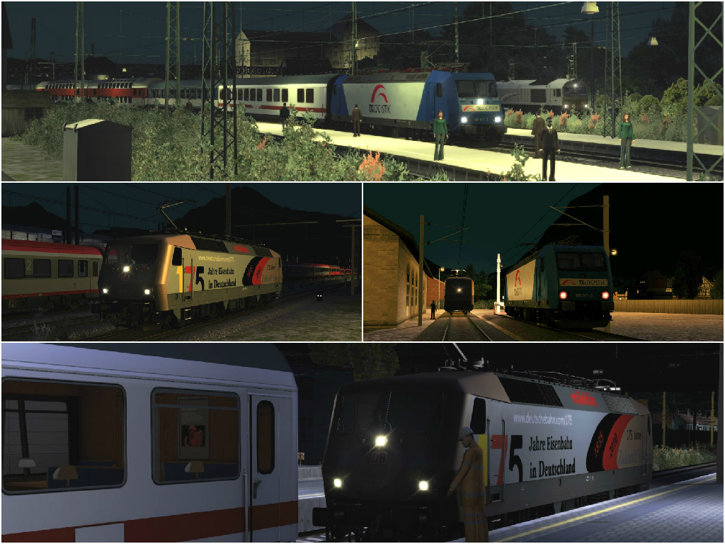 - MRCE BR 185.5, BR 266 Loco Add-On, BR120 IC EL, IC Eurofima Apmz Bpmz, Siemens Taurus ES64 U pack, Liegewagen Bc(ü)m 243, Doppelschlafwagen WLBm, TTB Szenariopaket 02 München-Augsburg