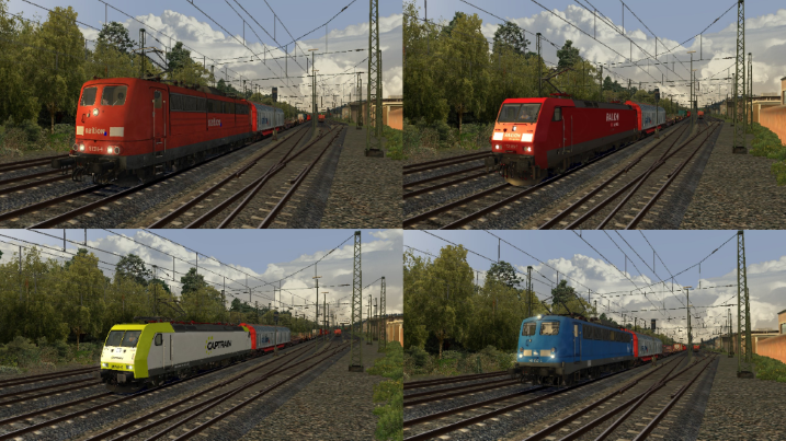 - Variante 1: vR BR.151 Vrot, Variante 2: DTG BR.152 DB Railion, Variante 3: DTG BR.185.5 Captrain und Variante 4: vR BR.140 PRESS