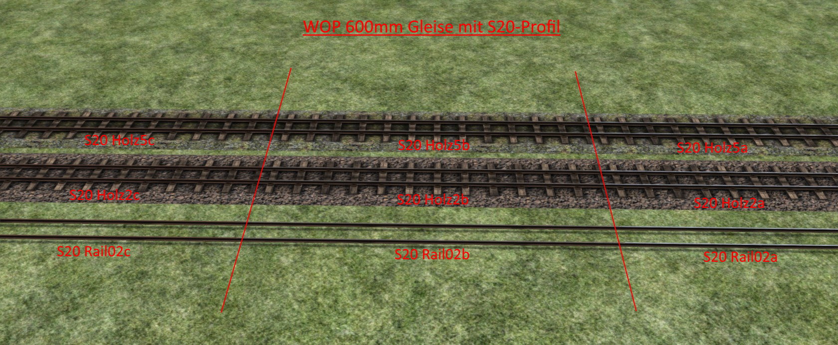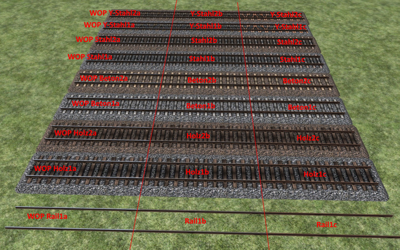 - sämtliche dieser Gleise auch als Version für wettergeschützte Tunnel/Überdachungen ohne Wintertexturen