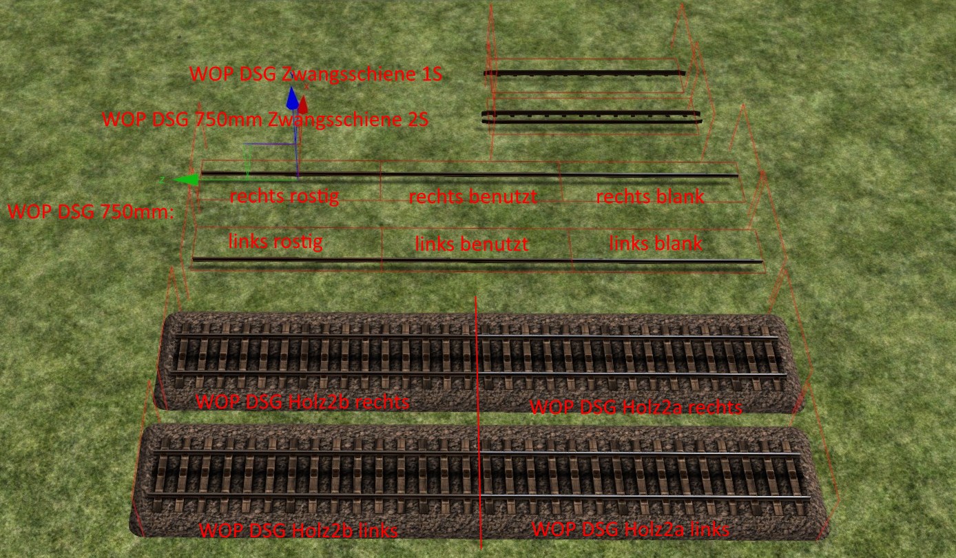 - 3.3: Schienenstoßgeräusche für sämtliche Gleise hinzugefügt (30m bei Regelspur, 10m bei Schmalspur); Weitere Brückengleisvarianten für die 750mm Schmalspurgleise hinzugefügt (bisher nur für das S33-Paket)