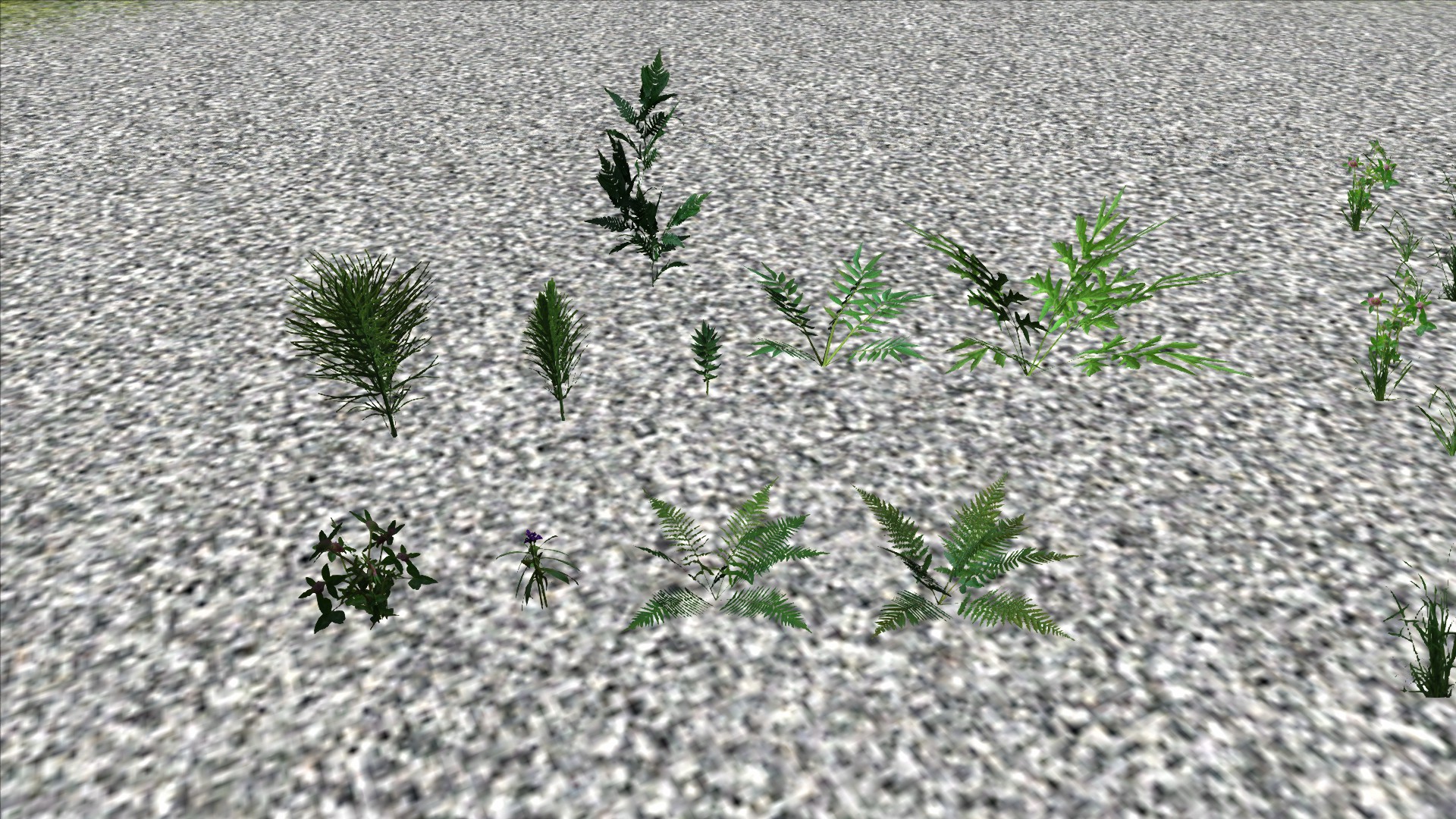 10 verschiedene 3D Farne, Blumen und Unkraut (mit und ohne Schatten)