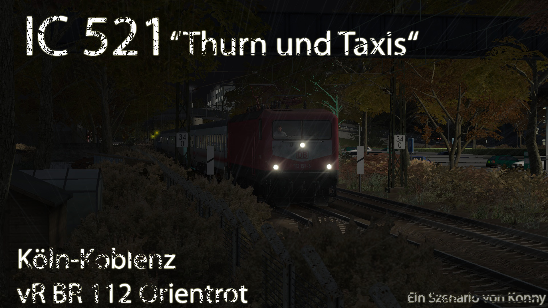 in diesem Szenario übernimmst du den InterCity 521 auf seiner Fahrt von Dortmund nach Passau, auf dem Teilstück Köln-Koblenz. Der besagte InterCity hat "nur" vom 10.06.2001 bis zum 14.12.2002 täglich die 784km lange Strecke in 8:35 Stunden bewältigt und wurde dabei bis Frankfurt von einer Lok der Baureihe 112 gezogen während ab Frankfurt eine 1016 der ÖBB am Zug war.