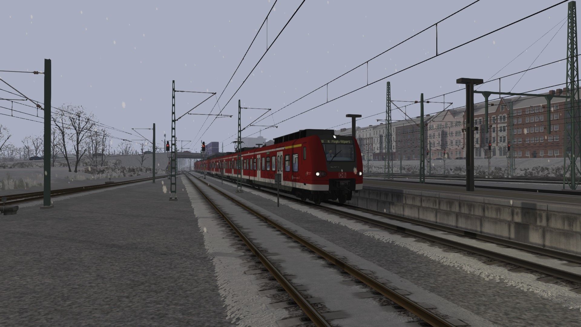 An einem verschneitem Vormittag fährst du die S Bahnlinie 5 der S Bahn Hannover bis Hannover Flughafen.Unterwegs hälst du in Hannover Nordstadt, Ledeburg, Vinnhorst, Langenhagen Mitte und Langenhagen Pferdemarkt.