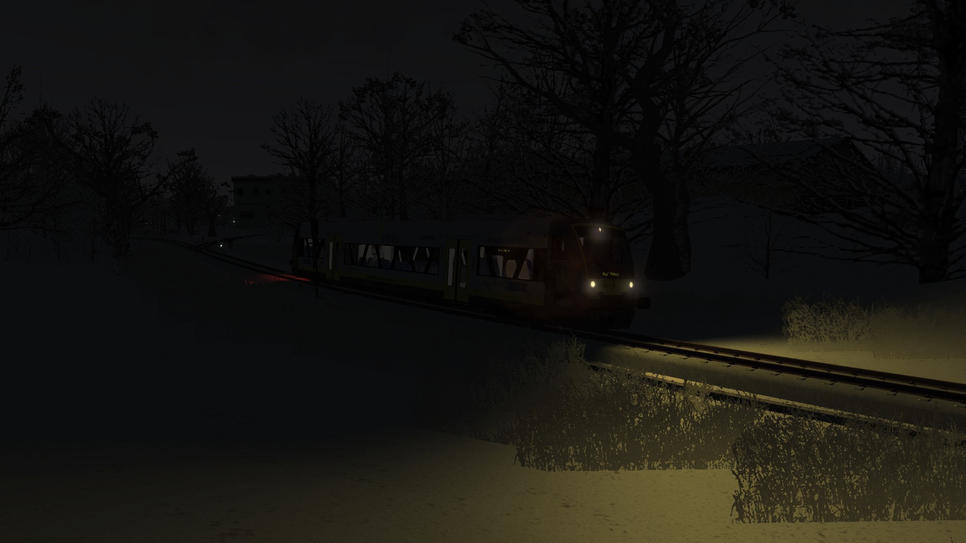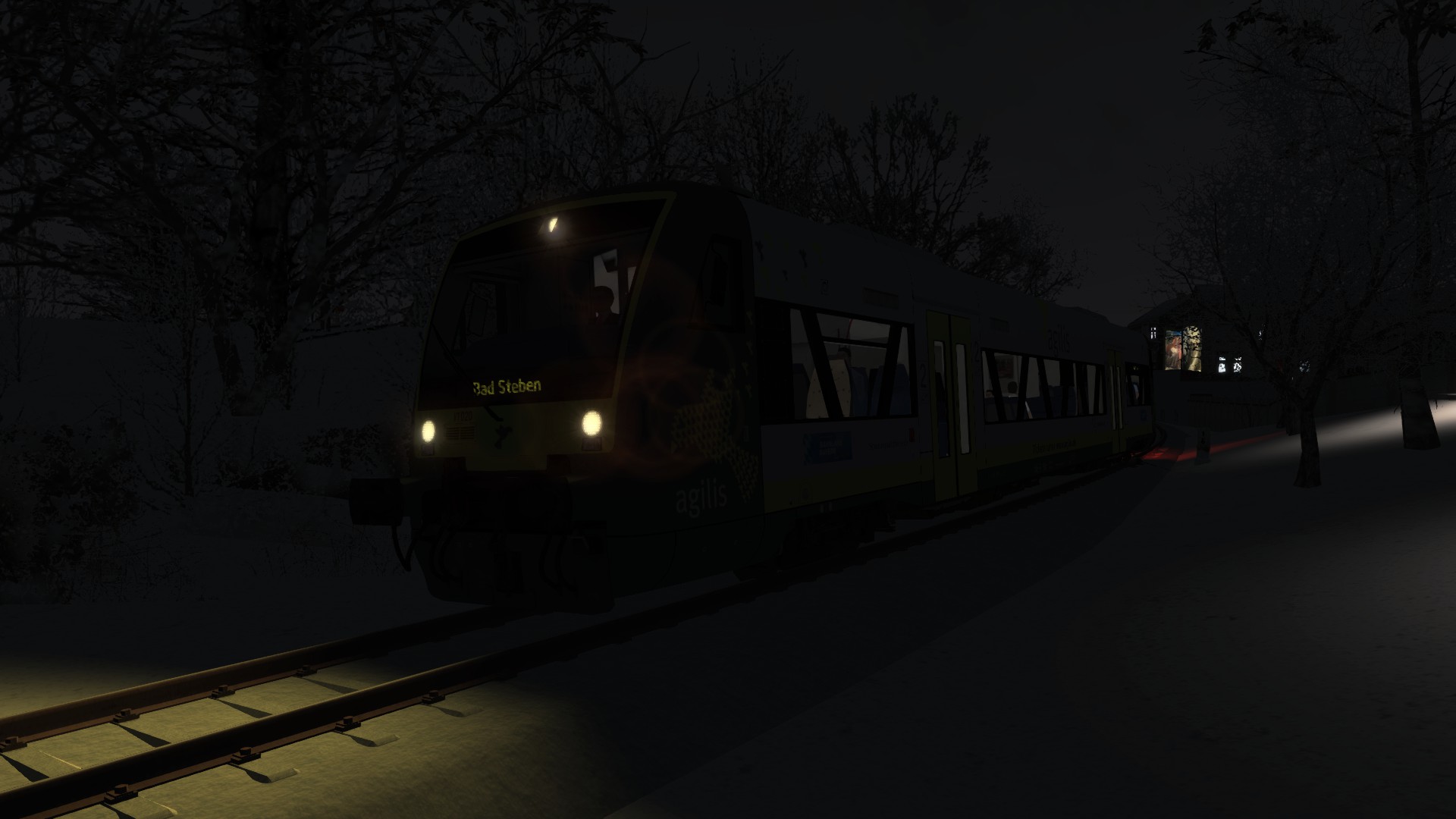 An einem kühlen Winterabend fährst Du ag84683 Marktredwitz - Bad Steben auf dem Abschnitt von Hof Hbf nach Bad Steben.