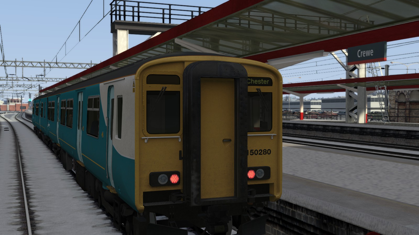 An einem sonnigen, aber dennoch kalten Wintertag fährst du einen der täglichen Shuttle-Züge zwischen Crewe und Chester.