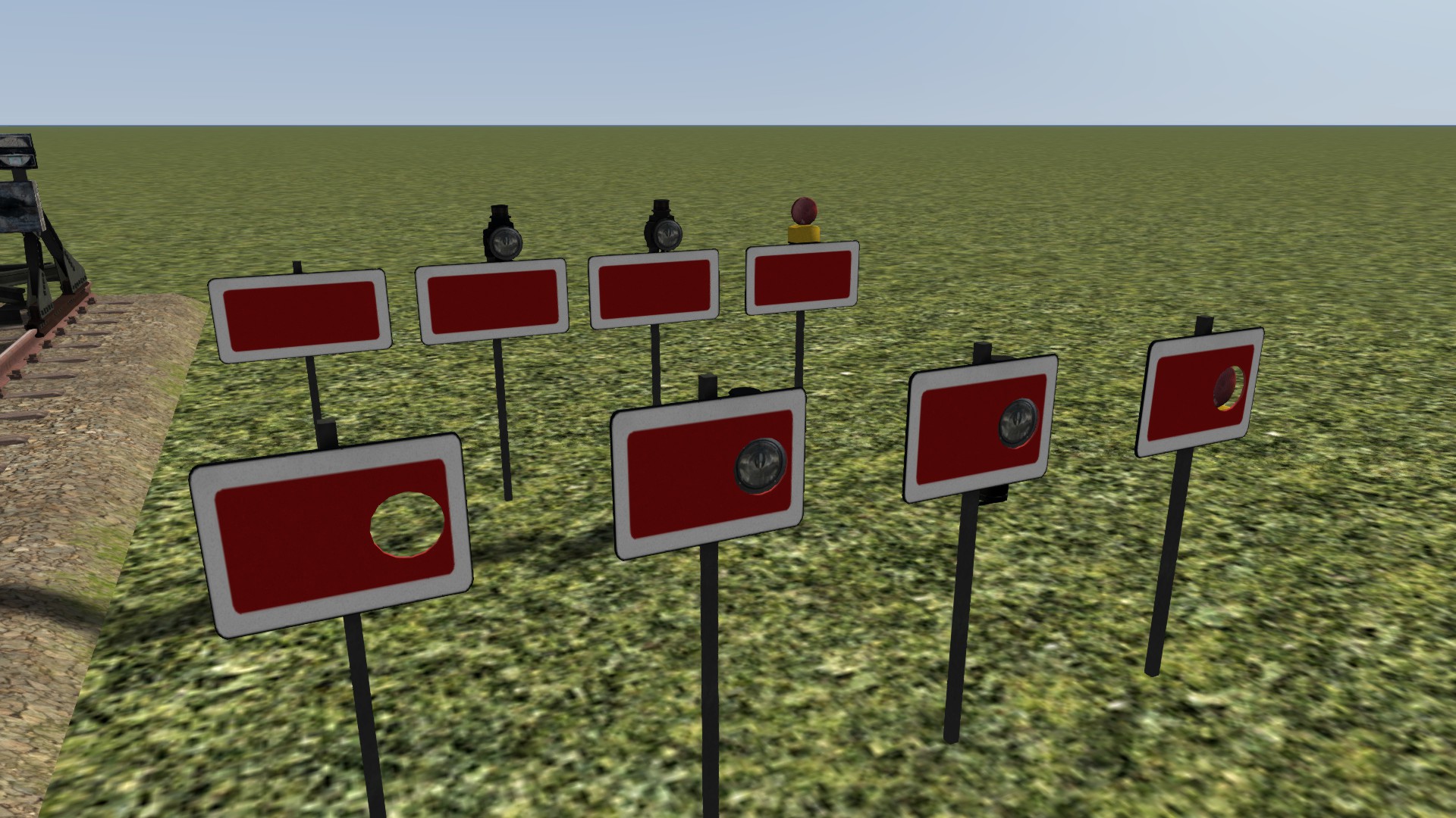 Set aus verschiedenen Prellböcken und Wärterhaltescheiben.