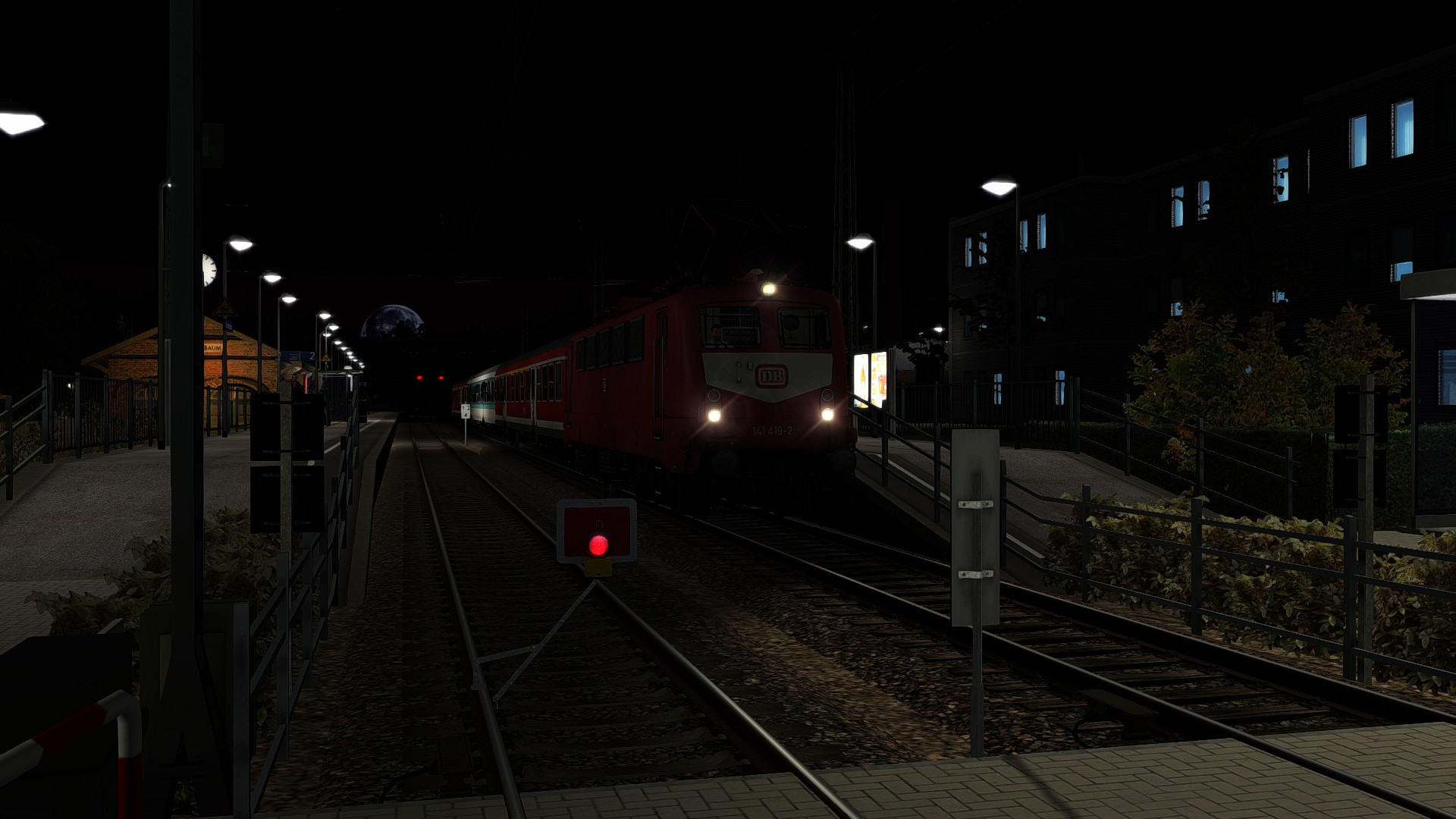 Ein nächtlicher Nahverkehrszug im Jahr 2005 von Wildau nach Köblitz.