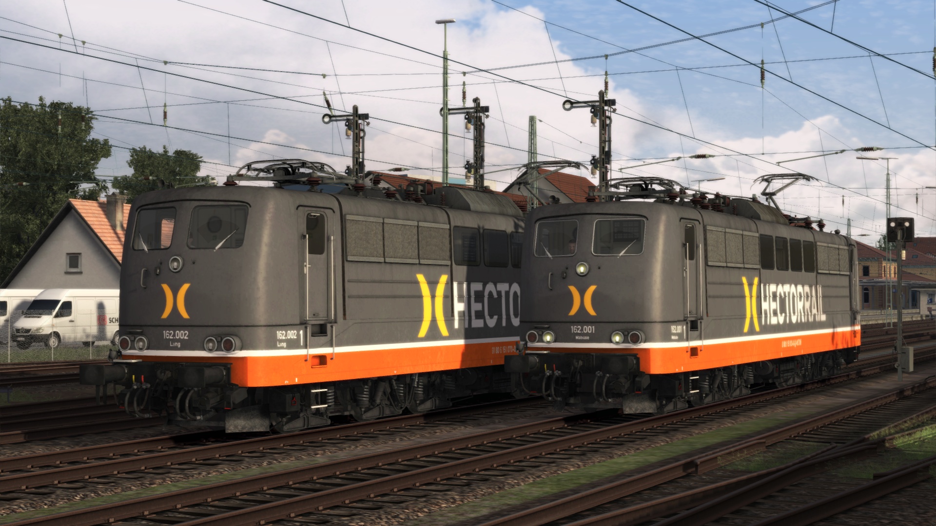 in diesem Paket findet Ihr zwei Repaints für die vR BR151 EL verkehrsrot aus dem DB BR151 EL Verkehrsrot + Faals 150 + Us 996 Pack. Enthalten sind 162.001 "Mabuse" und 162.002 "Lang", wie sie bei HectorRail im Einsatz sind. Die Loks unterscheiden sich außer in Loknummer und Name durch unterschiedliche Rahmen der frontseitigen Führerstandsfenster, sowie geringfügig im Pflegezustand (Glanz der Lackierung).