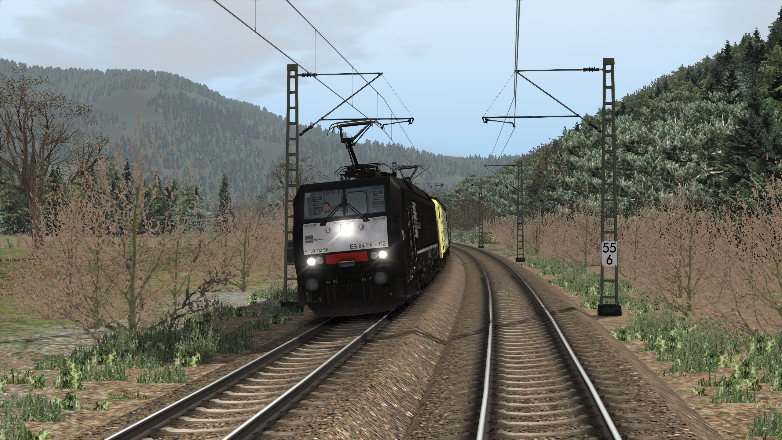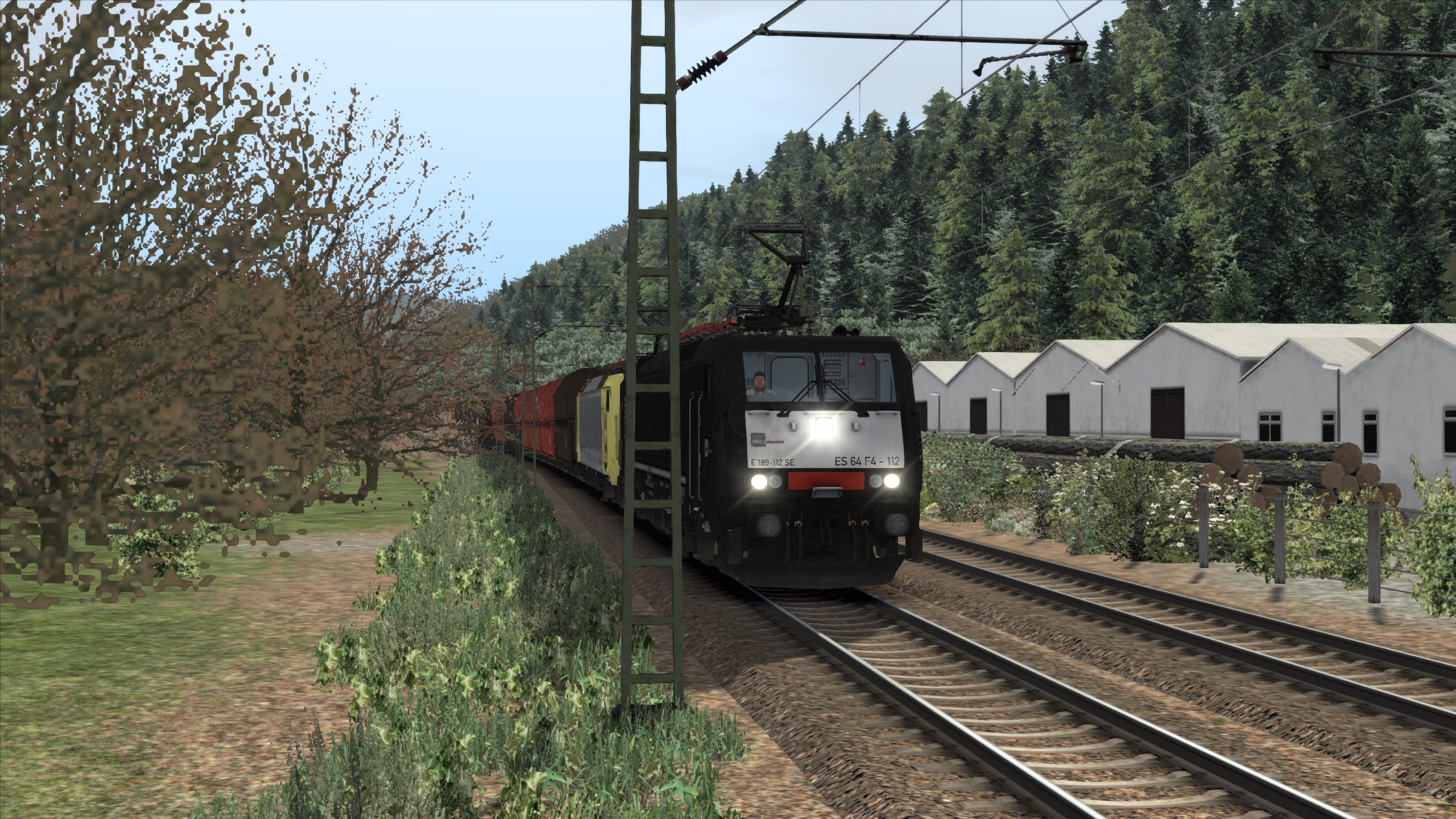 In diesem Szenario für die Strecke Hagen Siegen V3 fährst du die BR189 von vR in Doppeltraktion mit einem 3100t schweren Kohlezug. Der KI-Verkehr ist abgesehen von Güterzügen und einem ICE auf einem echten Fahrplan basiert. Da ich keine Flirt Fahrzeuge habe, kann ich den Einsatz der Fahrzeuge leider nicht ganz realistisch nachstellen. Abgestellte Fahrzeuge sind wie eigentlich immer in meinen Szenarios an Google Earth-Aufnahmen angelehnt.