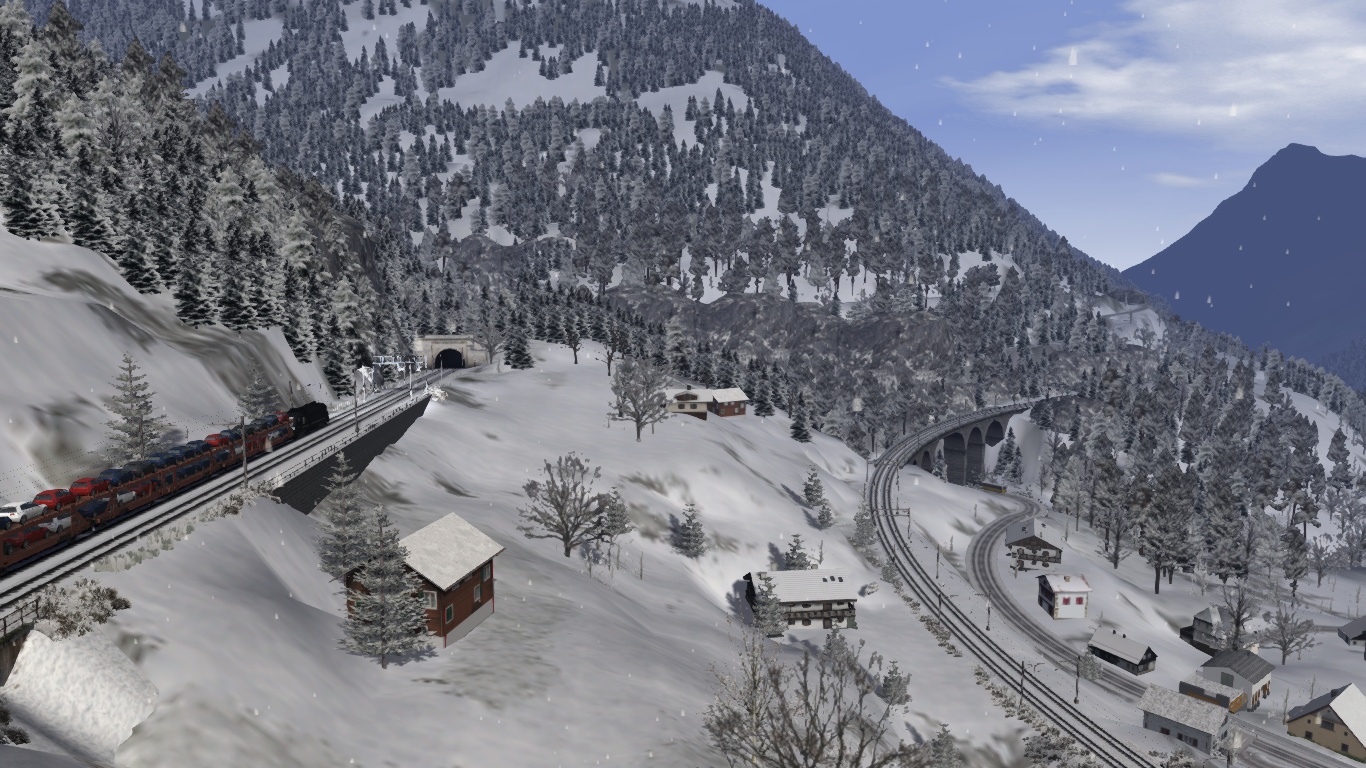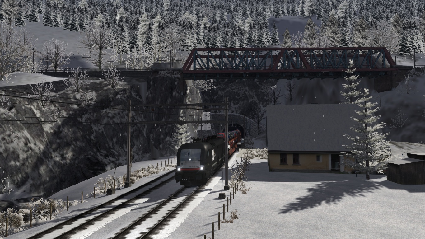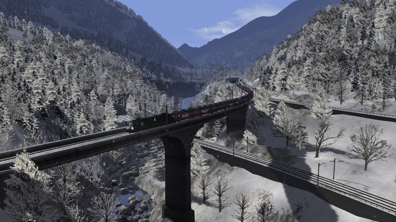 Du fährst an einem Wintertag einen Frachtzug mit Autobeladung von Italien nach Norden und bis Erstfeld. Start ist in Göschenen.