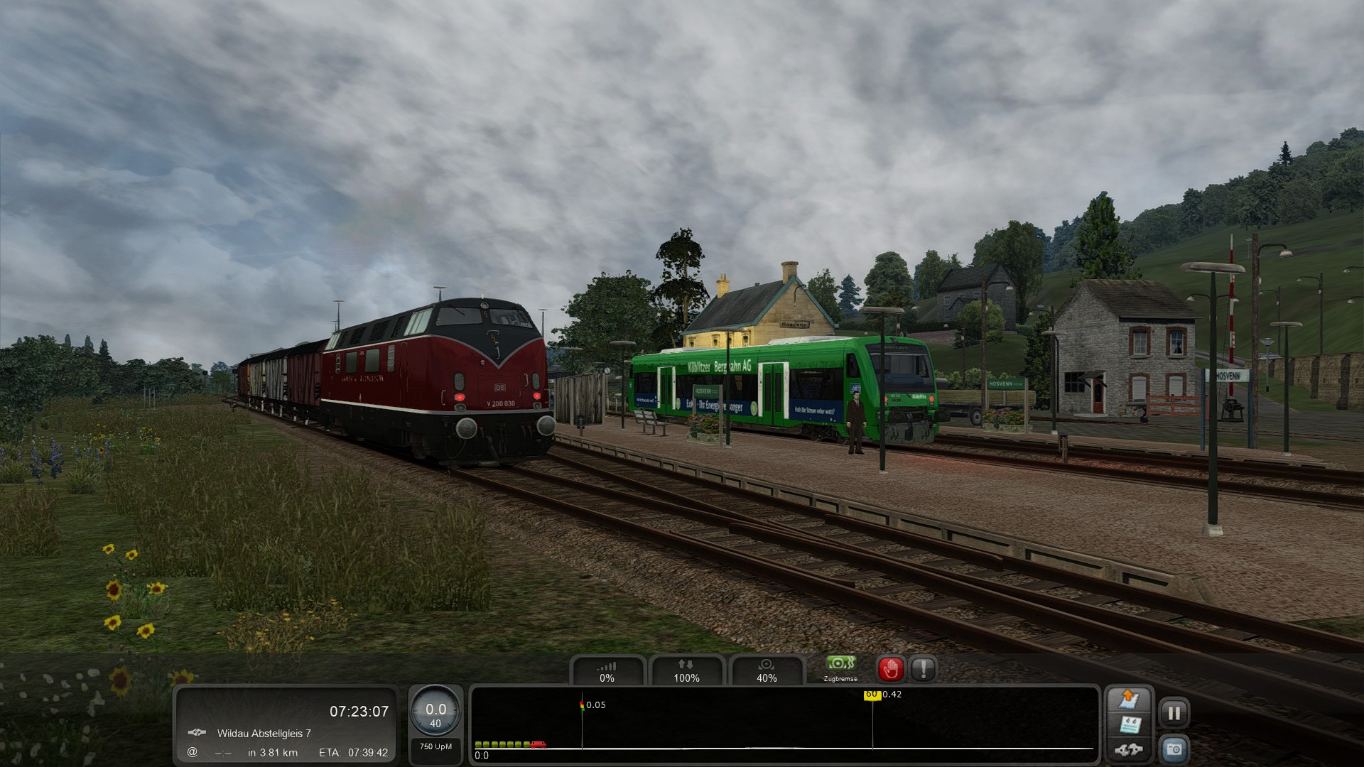 So eben ist dein Kollege mit diesem Güterzug aus der Hosvenner Brauerei eingetroffen. Die Kirmes in Wildau beginnt Morgen und du bringst deshalb heute eine große Ladung Bier bis nach Wildau.Dort angekommen stellst du die Wagen bitte am Bahnhof ab und von dort aus werden sie per Transporter zum Festival geschafft.Los geht es sobald die RB aus Köblitz angekommen ist.Gute Fahrt !