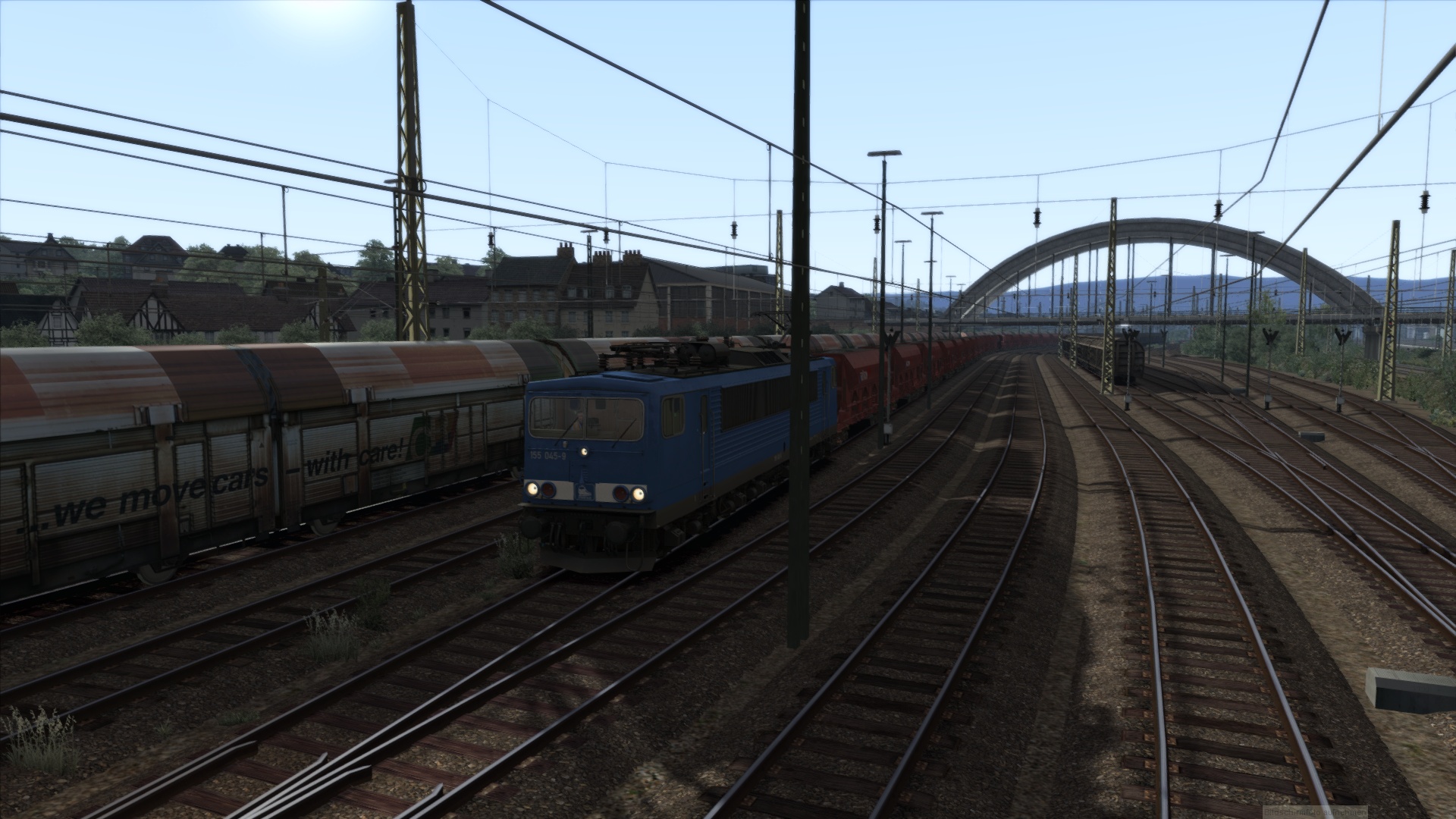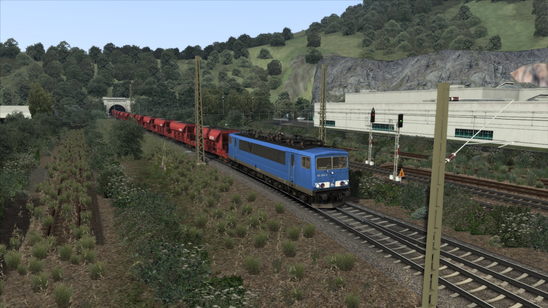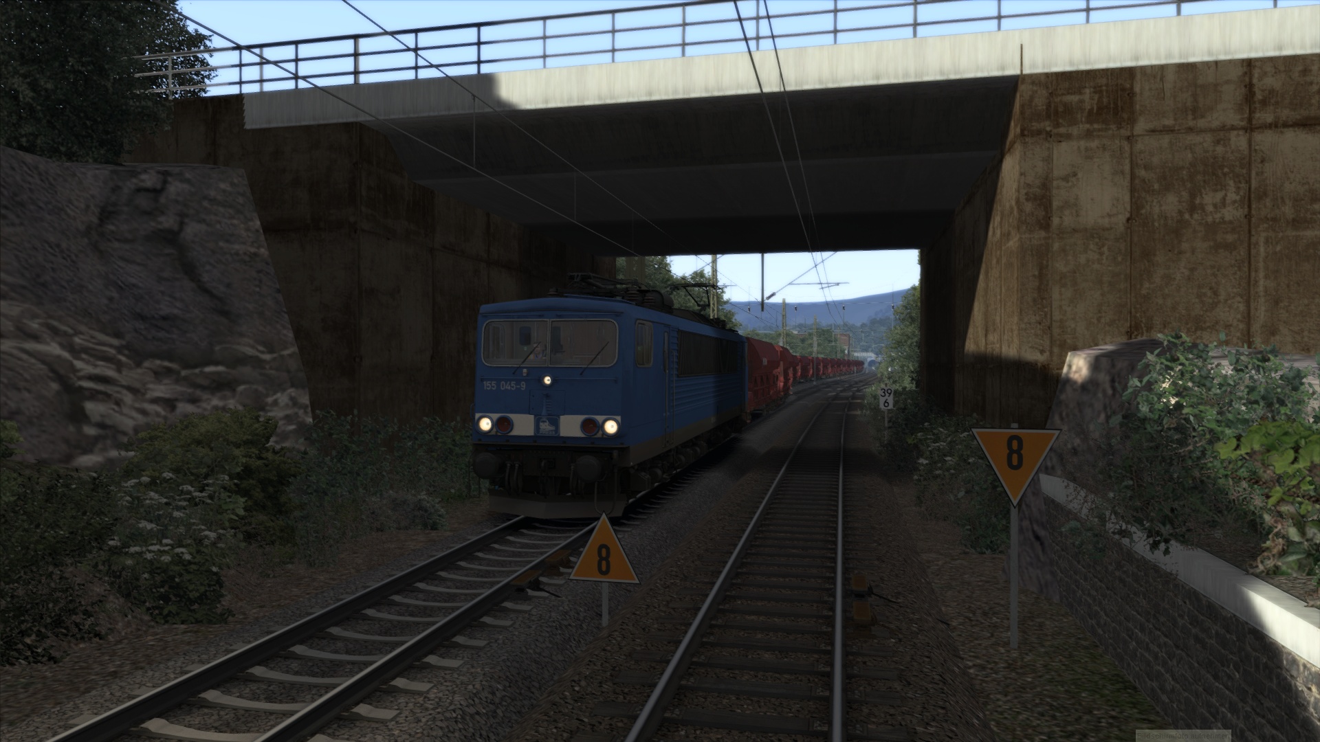 In diesem Szenario bringst du einen schweren Facns Schotterzug mit der Press BR 155 von Hagen Gbf nach Finnentrop . Da einiges los sein wird auf der Strecke , solltest du versuchen , die vorgegebenen Geschwindigkeiten einzuhalten und nicht bummeln .