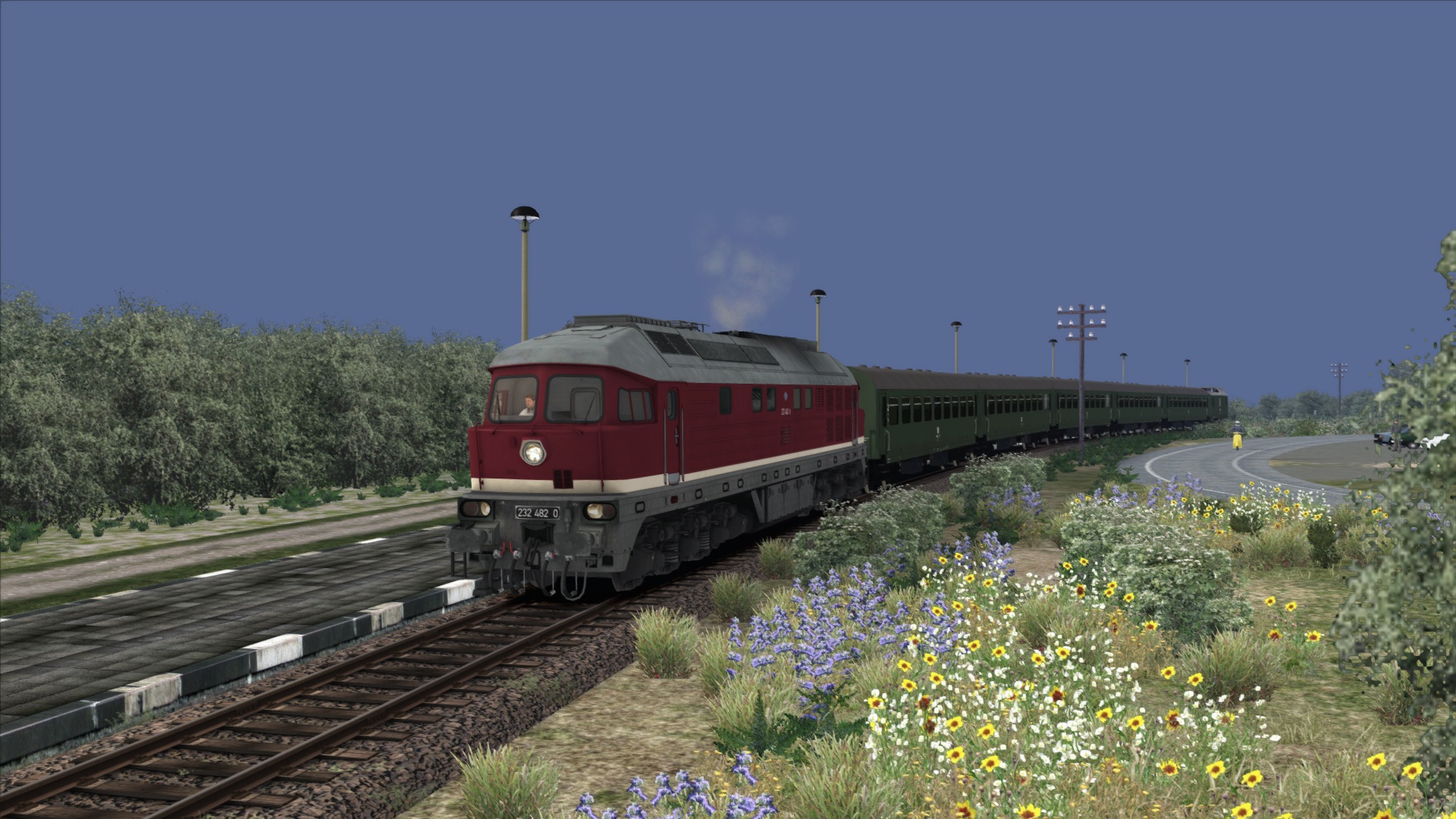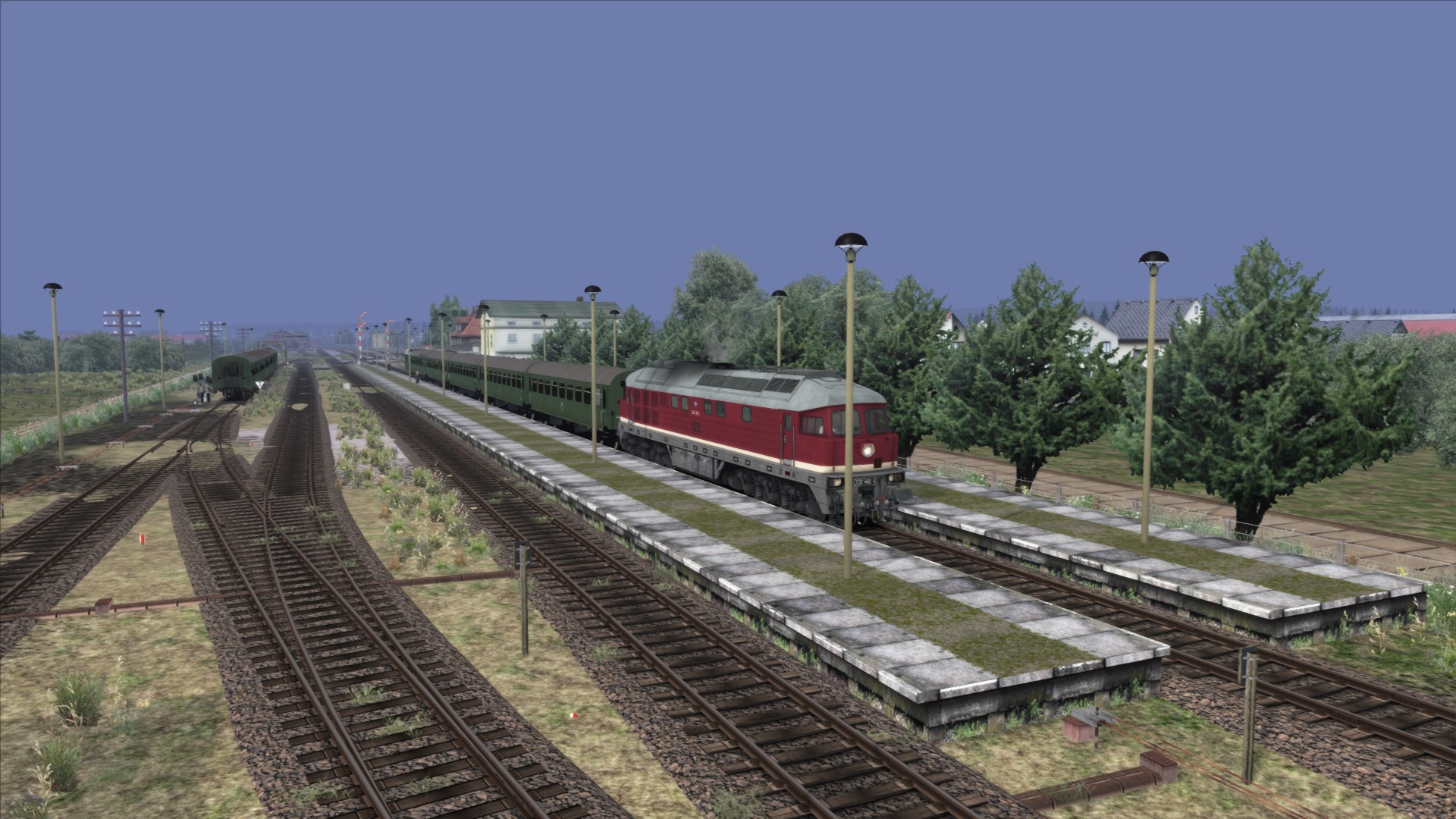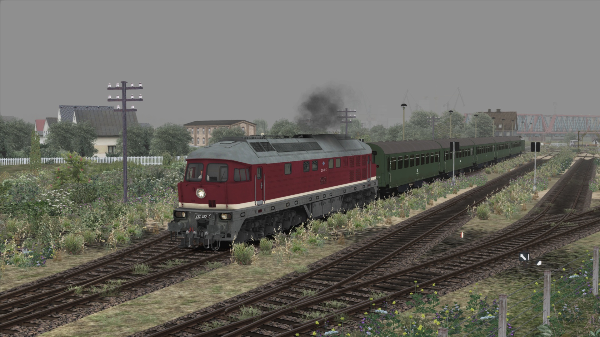 Wir befinden uns im Jahr 1989 . Auf Grund von mehreren defekten Maschinen an der Baureihe 110 , hat sich die Reichsbahndirektion Greifswald dazu entschieden , 3 Loks der BR 132 (232) auf die Insel Usedom vorübergehend zu entsenden , um den Planbetrieb aufrecht zu erhalten . Du hast heute das Glück , eine von diesen Maschinen zu fahren . Dein Personenzug , der P 2447 steht im Bf Wolgaster Fähre und möchte von dir nach Ahlbeck gebracht werden . Unterwegs hältst du auf allen Bahnhöfen bzw Haltepunkten . Fahrplanmäßige Abfahrtszeit wird gegen 12.52 Uhr sein .
