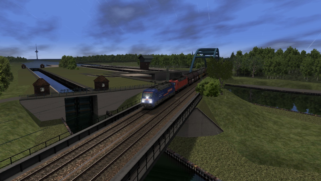 Du übernimmst in Münster einen schweren Kohlezug der gerade vom Ruhrgebiet eingetroffen ist. Richtung Osnabrück Umschlagbahnhof geht es weiter. Ersatzweise fährst Du eine BR 101 in Doppeltraktion, da eine dafür vorgesehene BR145 ausgefallen ist. Unterwegs wirst Du wahrscheinlich das eine oder andere mal wegen einer Zugüberholung auf das Ausweichgleis geleitet. Max Geschwindigkeit 100 kmh / PZB U.