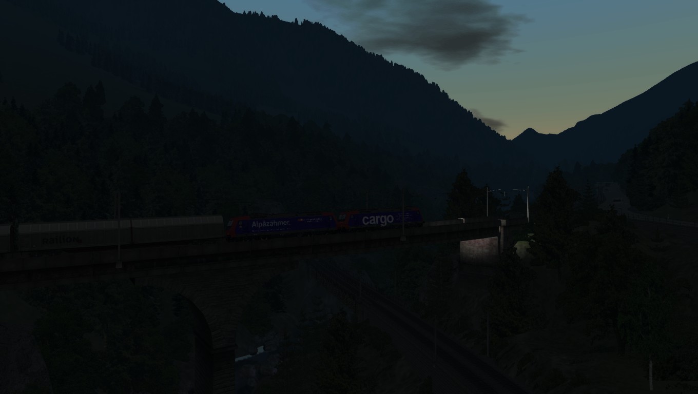 In Erstfeld startend fährst Du einen gemischten Güterzug von Deutschland kommend über die Gotthardstrecke nach Italien im Teilstück der Nordrampe. Du hältst vor dem Gotthard Tunnel in Goeschenen. Dort übernimmt der Kollege das Reststück bis Italien.