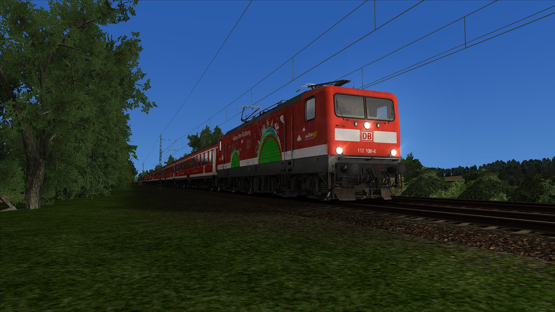 Mir ist bewusst dass die Lok damals nicht mit bwegt- Aufklebern fuhr , jedoch wollte ich nicht darauf verzichten ein Szenario mit dieser Lok zu bauen , denn abgesehen von den bwegt - Aufklebern fuhr die Lok ja so tatsächlich mal am IRE Berlin Hamburg.