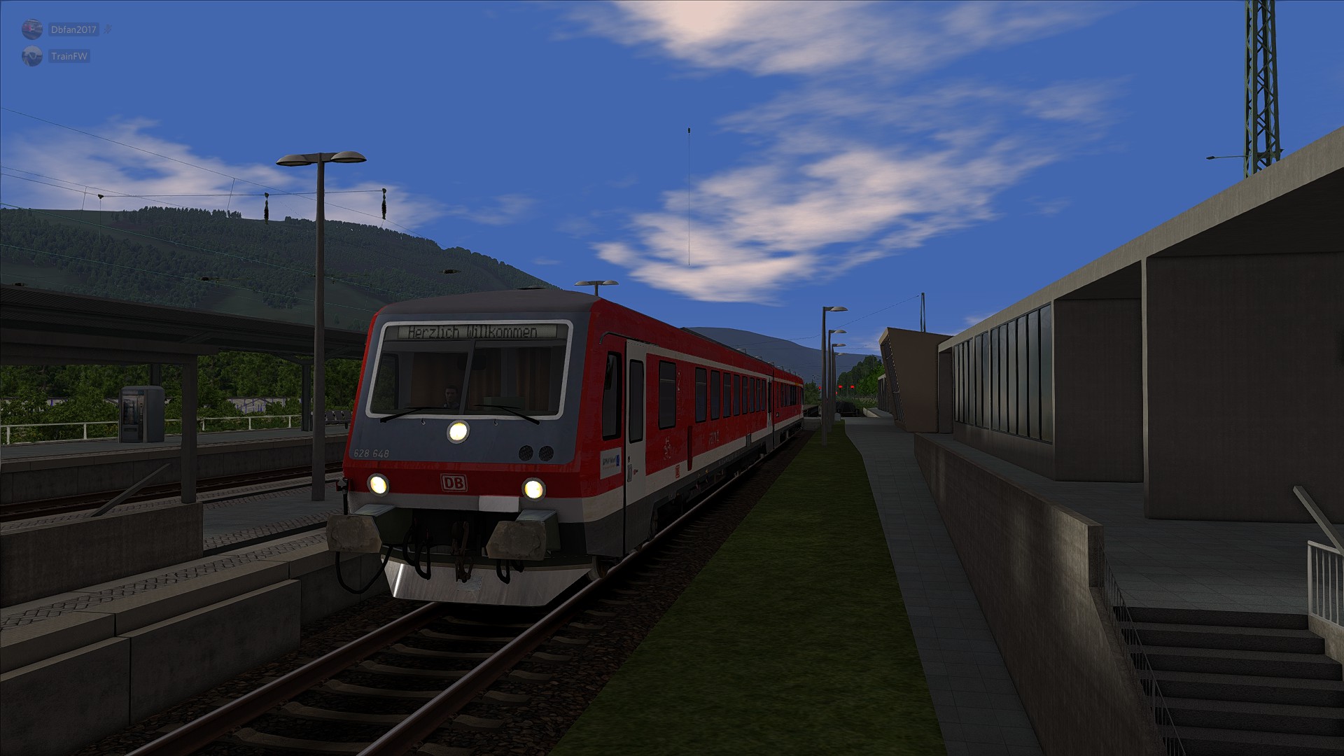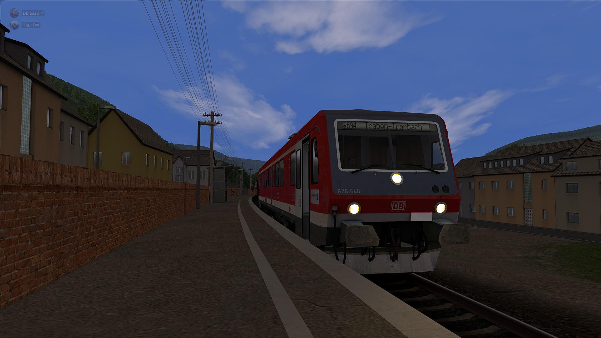 Guten Tag Kollege ! Du hast so ebend deinen 628 vom Kollegen übernommen und wirst diesen nun als RB94 " Moselweinbahn" nach Traben Trarbach (RB 13820) und zurück (RB 13823) bringen. Los geht es hier in 4min , um 17.17 Uhr. Mache nun erstmal dein Fahrzeug fahrbereit und öffne die Türen. Gute Fahrt !