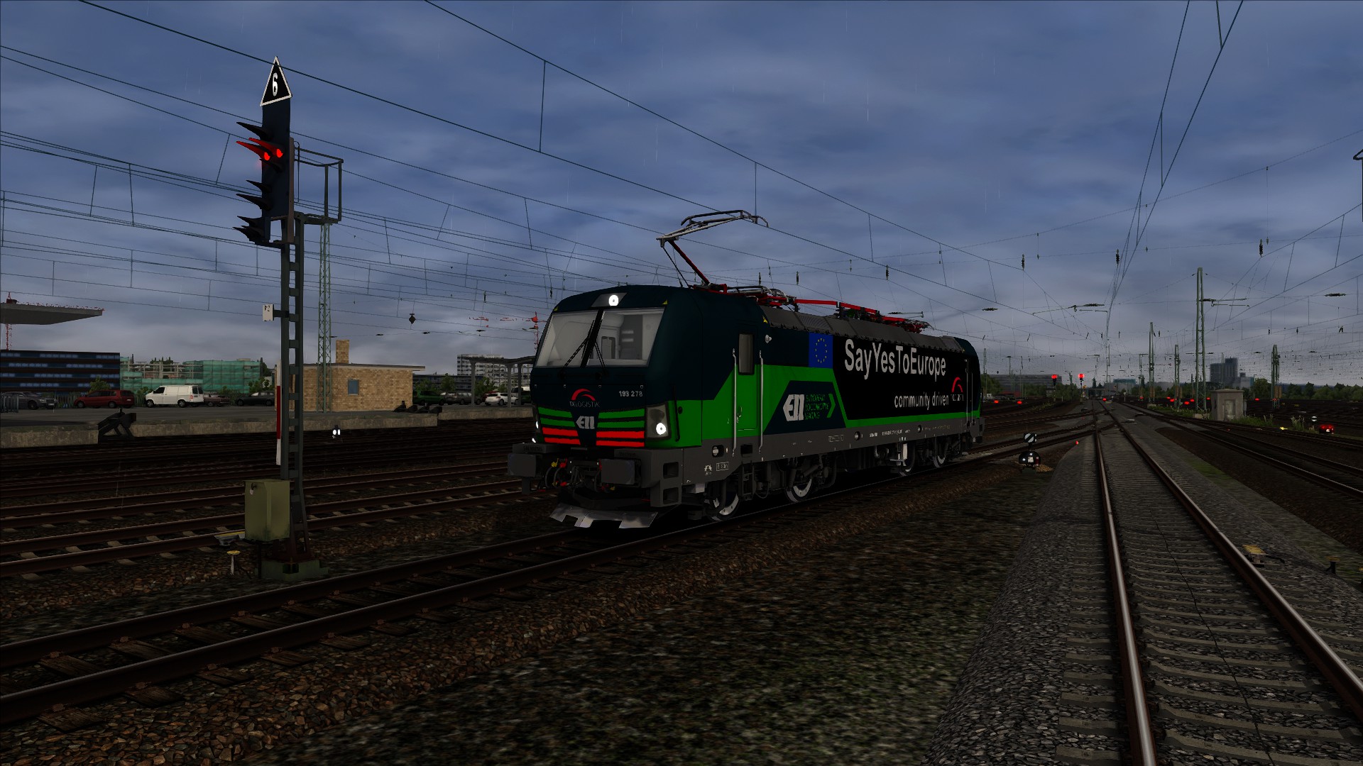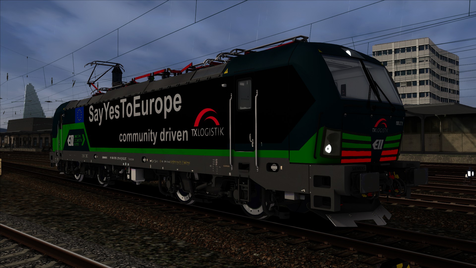 hier kommt die ELL-Maschine 193 278, welche seit ein paar Tagen mit der TX Logistik für die Europawahl wirbt, mit dem Slogan:"SayYesToEurope".