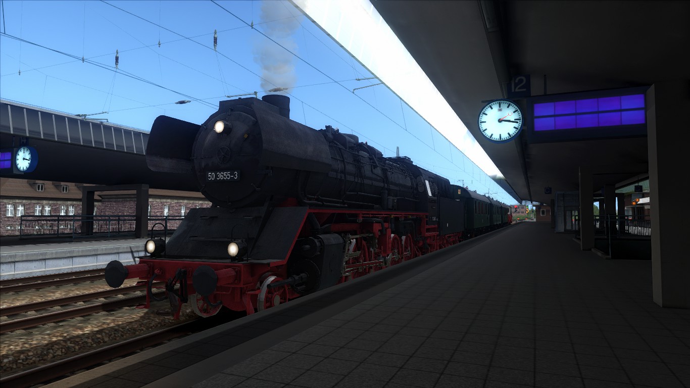 Am 11.05.2019 fuhr eigentlich die 78 468 als Probefahrt nach der bestandenen Kesselhauptuntersuchung den Hochzeitszug auf dem Abschnitt Münster – Lengerich und zuvor den Leerzug nach Münster Hbf. Da es aber keine 78er im TS gibt, habe ich mich entschlossen die 50 3655 einzusetzt für diese Fahrt. Ab Lengerich Hohne fährt der VT03 mit den 3 Wagen nach Bad Iburg und dann wieder zurück nach Münster.