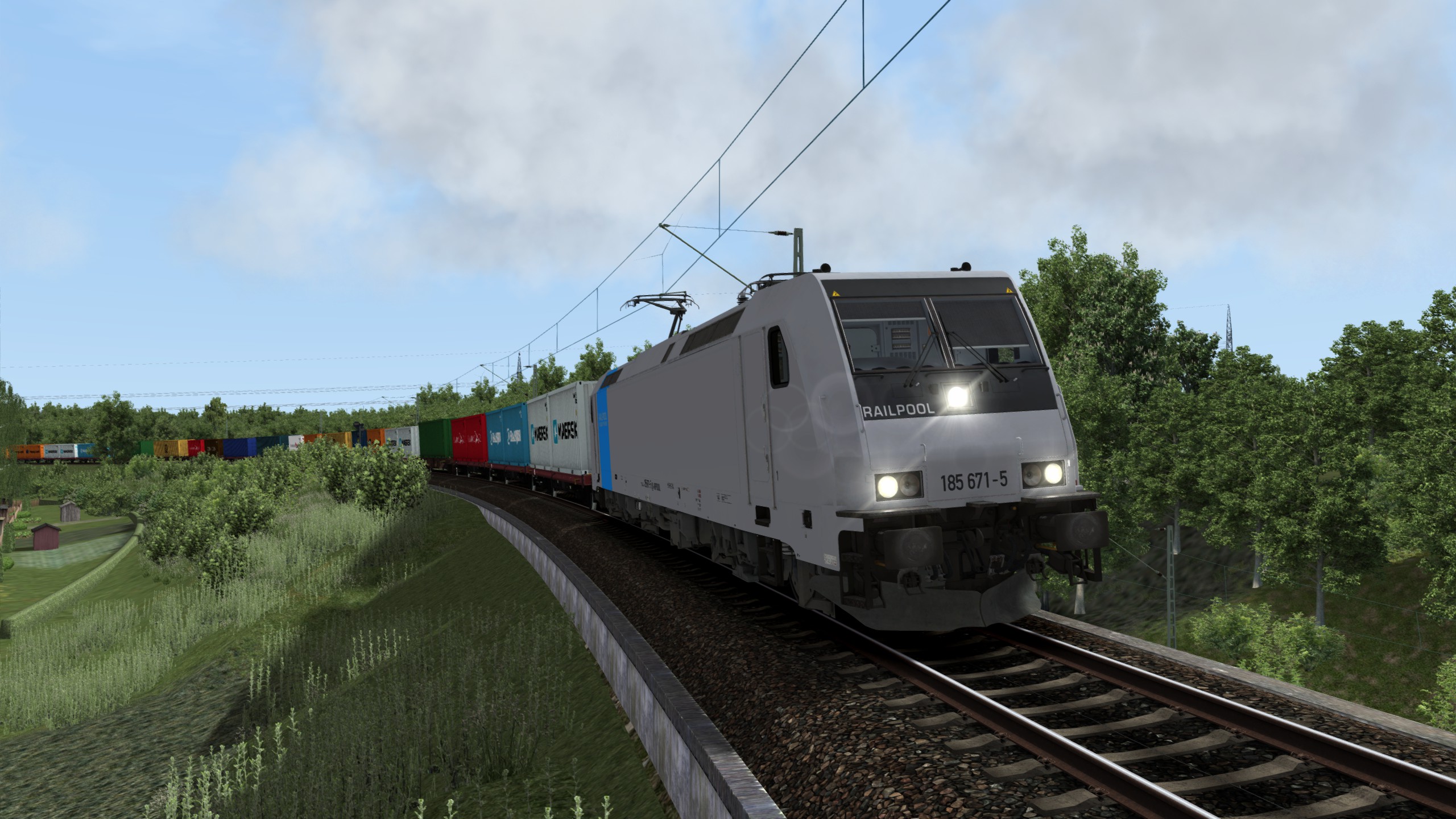 In diesem Szenario fährst du einen Containerzug mit einer Railpool 185 von Basel nach Freiburg. Das Szenario beansprucht den Arbeitsspeicher ziemlich stark (in meinem Fall hat der TS beim Spielen 4,7GB RAM belegt) und ist somit wirklich nur für den 64bit TS geeignet und benötigt auch einen PC mit ausreichend RAM.