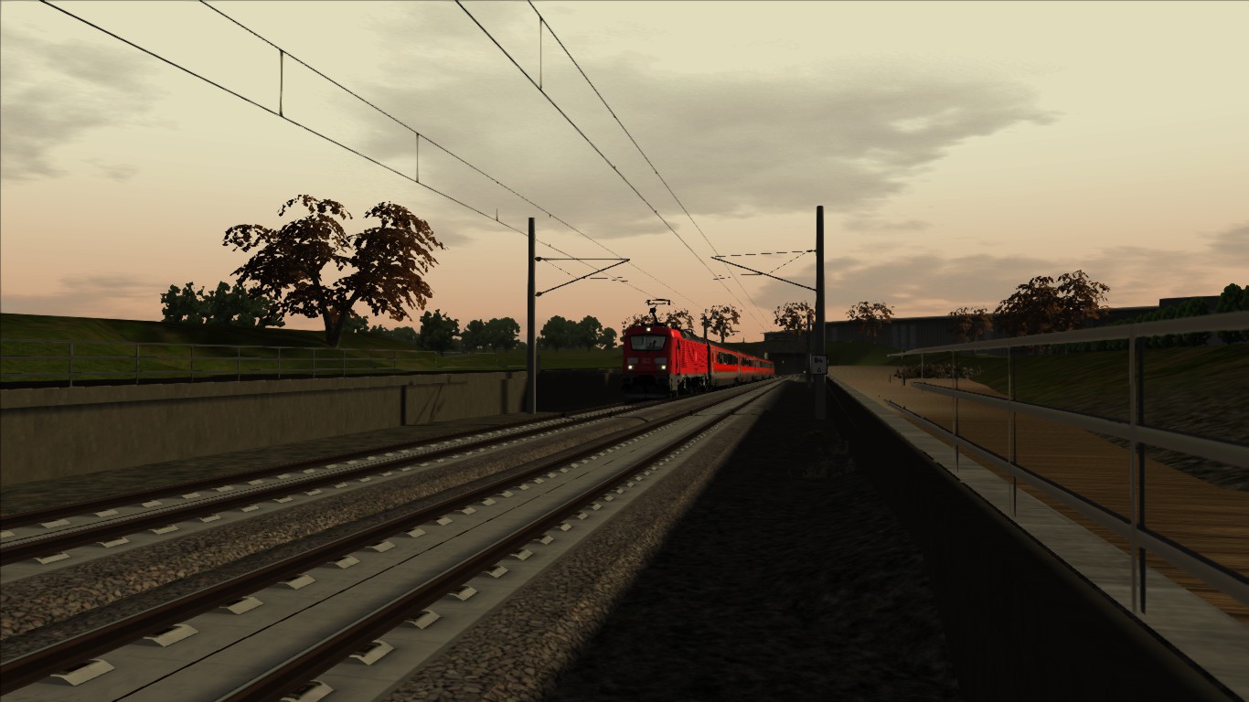 Da es zu einer Zugüberholung eines schneller fahrenden Zuges kommt, wird empfohlen mit Taste 2,3 in die Außenansicht zu wechseln um den unschönen TS Grafikbug während dem Überholvorgang zu vermeiden !!!