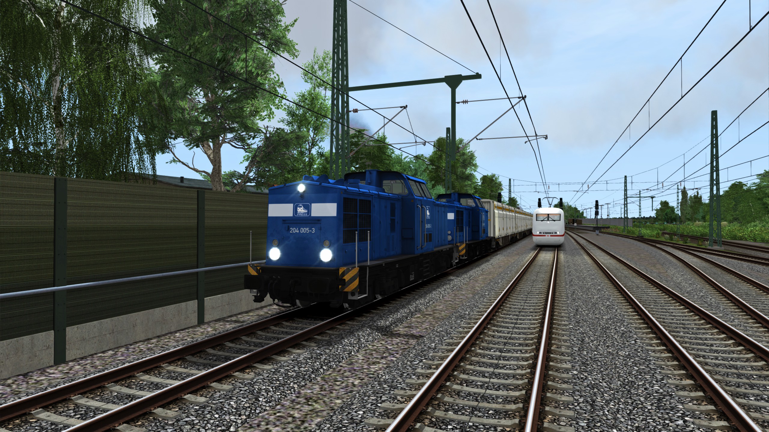 Du bringst einen Zug mit leeren Holzcontainern vom Rbf Maschen nach Uelzen. Als Zuglok kommen zwei Fahrzeuge der Baureihe 204 zum Einsatz. Das Szenario geht ungefähr 50 Minuten lang.