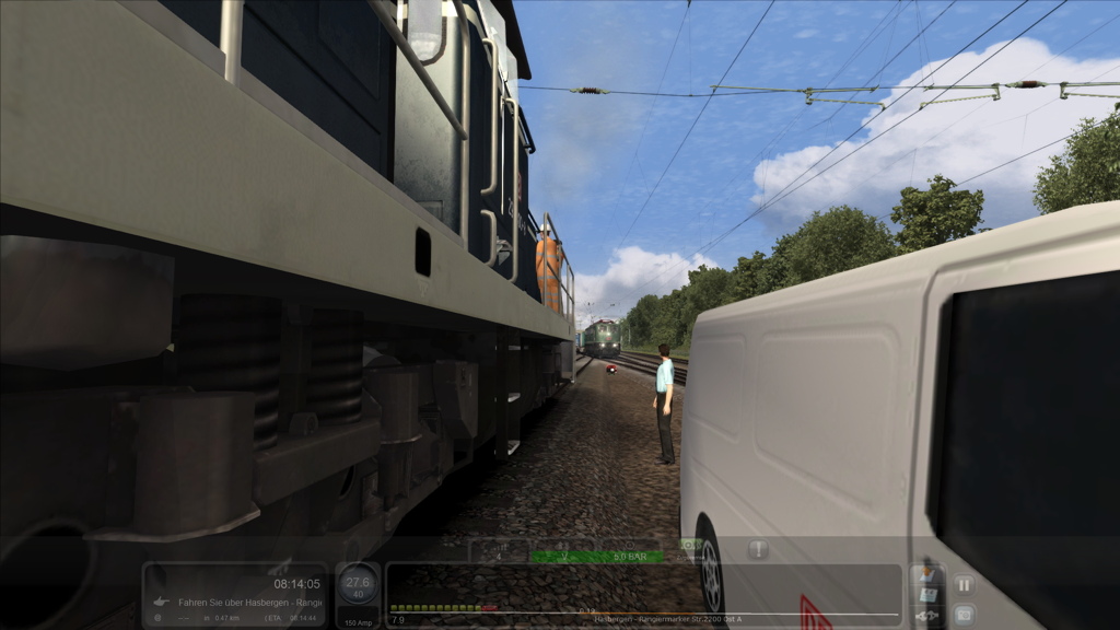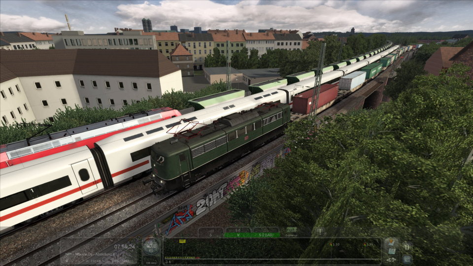 Mit der BR 151 035 beginnen Sie Ihre Fahrt in der Lokabstellung in Osnabrück. Sie holen sich den 1. Teil Ihres Zuges aus dem Rangierbahnhof und bringen ihn zur Abstellung in Osnabrück-Hörne. Sie fahren solo weiter nach Hasbergen und holen von dort den 2. Teil. Zurück in Hörne koppeln sie den abgestellten 1. Teil hinten an Ihren Zug, und fahren anschließend den Ganzzug nach Ostercappeln in das Ausweichgleich. Dort übernimmt sofort ein Hamburger Kollege zur Weiterfahrt zum Containerhafen.