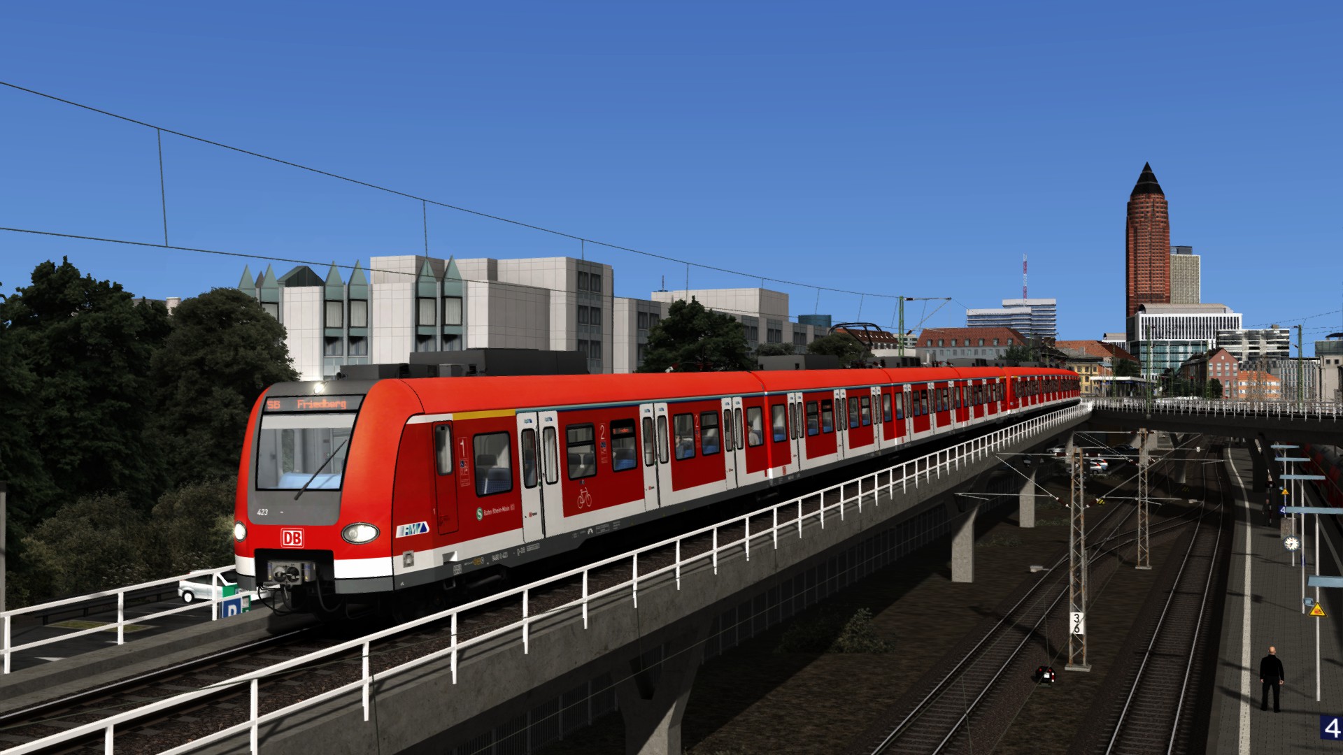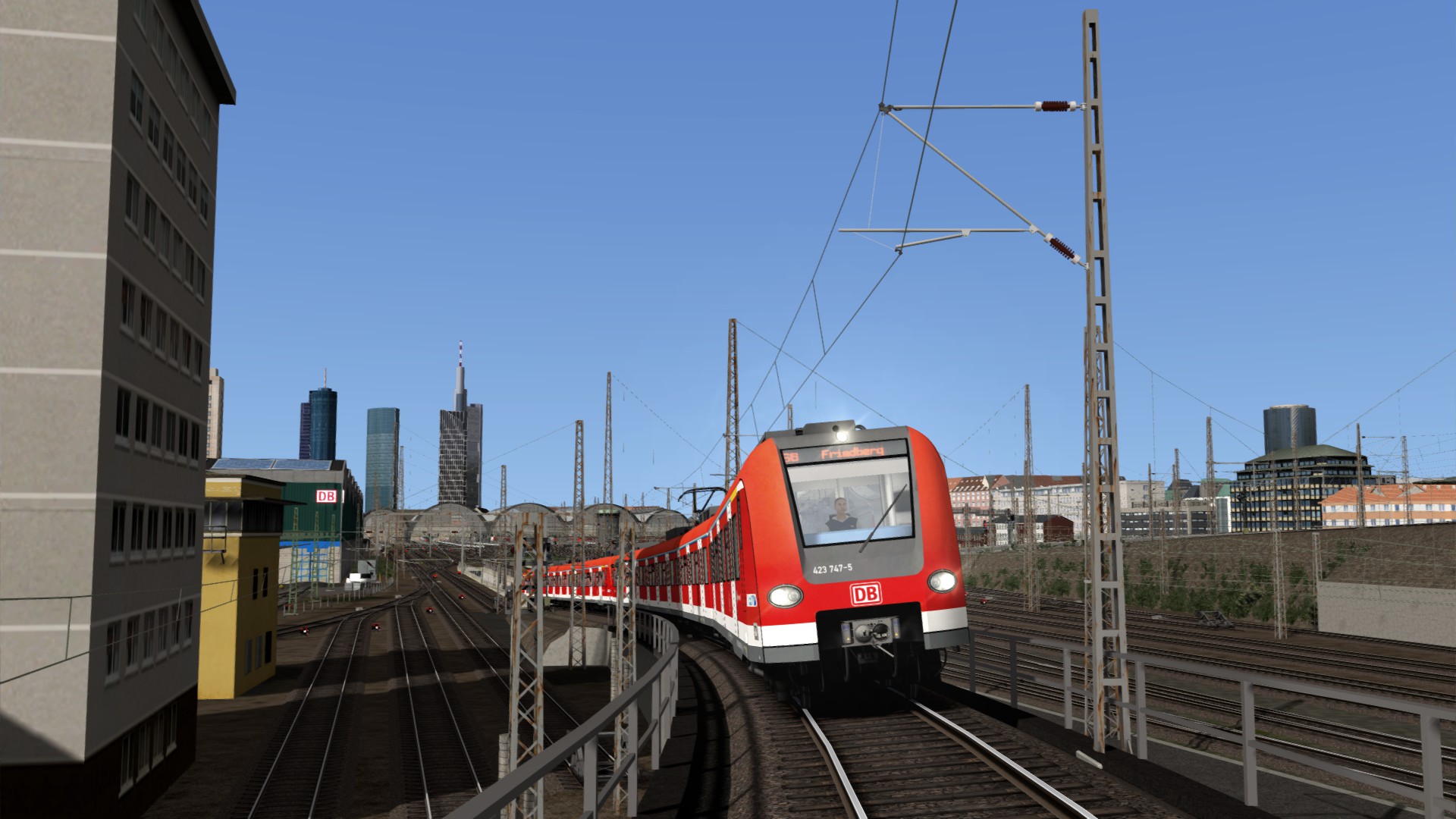 Hallo! Du fährst am Abend einen Vollzug der Baureihe 423 als S 35660 von Frankfurt Süd nach Friedberg.