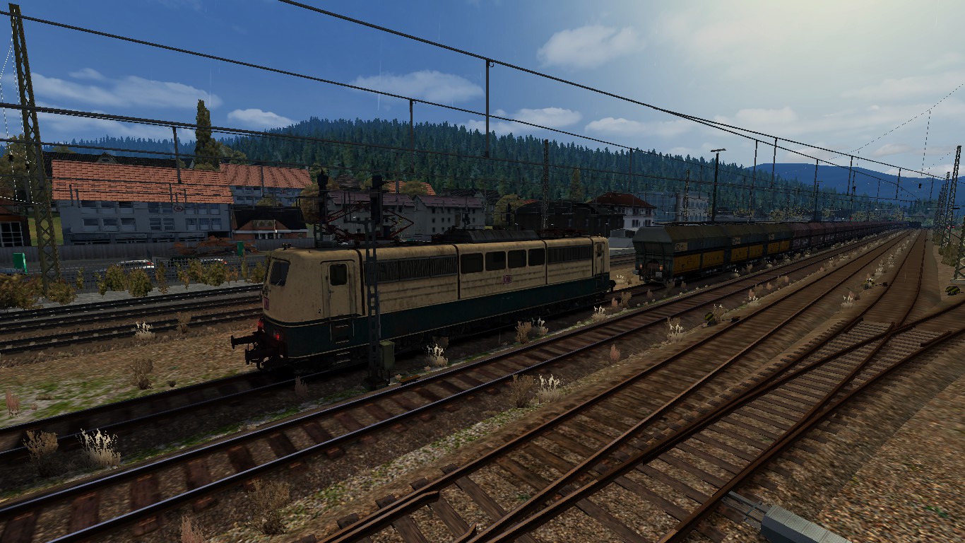 gerade ist in Altenhundem ein 2600t schwerer Erzzug mit 2x BR189 MRCE als Doppeltraktion eingetroffen, der Erz zum Stahlwerk nach Siegen Weidenau bringt. Diesen Güterzug wirst Du über die Rampe mit deiner BR151 Schublok unterstützen. Nach dem Ankuppeln hinten am Erzzug, steigst Du in den Führerstand der BR189 ein und fährst diesen Zug bis Siegen Weidenau. Danach fährst Du wieder als Einzellok zurück nach Altenhundem in die Abstellung.