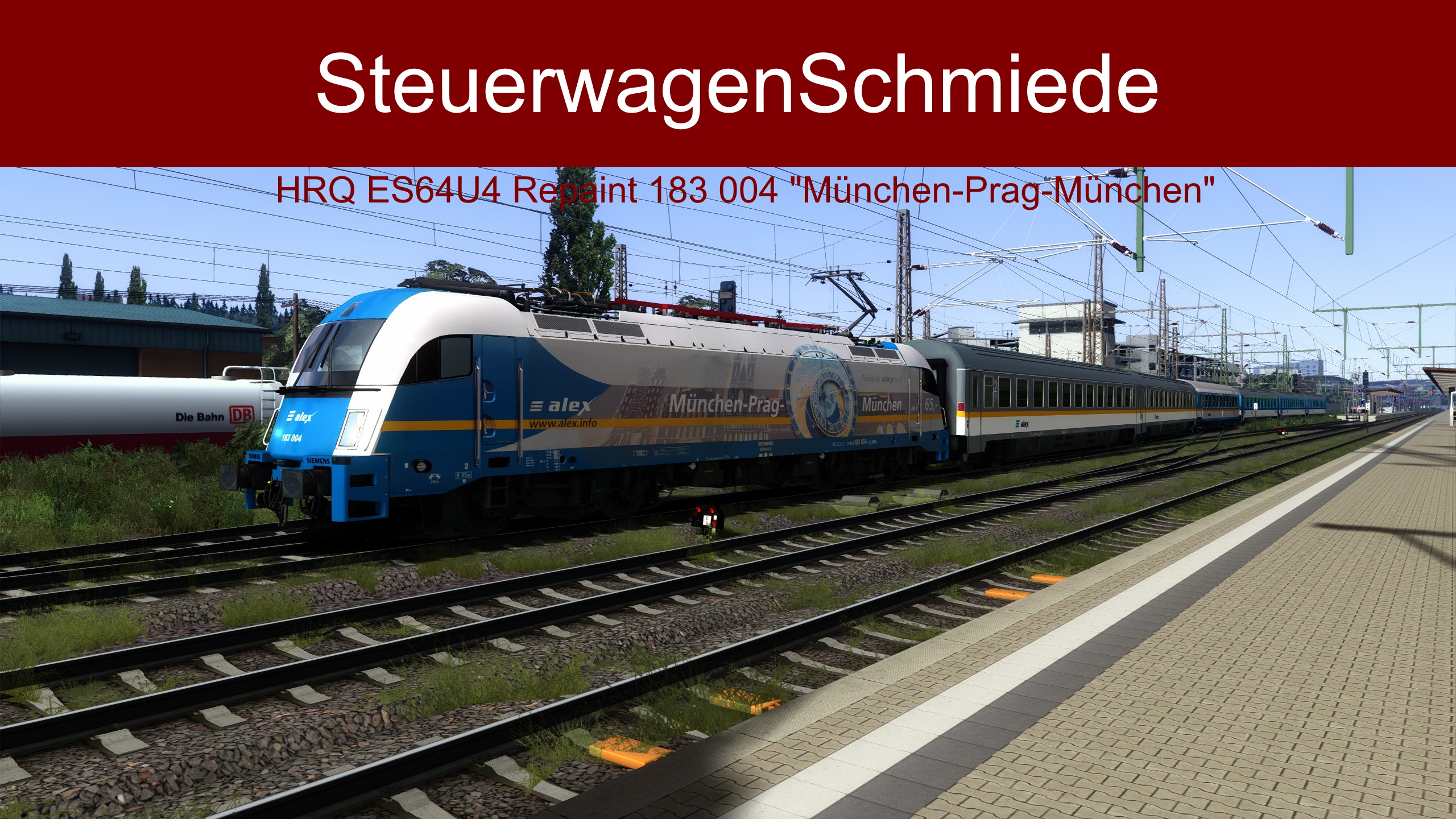 Hier erhaltet ihr das Repaint BR 183 004 mit Werbung für die Länderbahn-Verbindung zwischen München und Prag für die Taurus von HRQ.