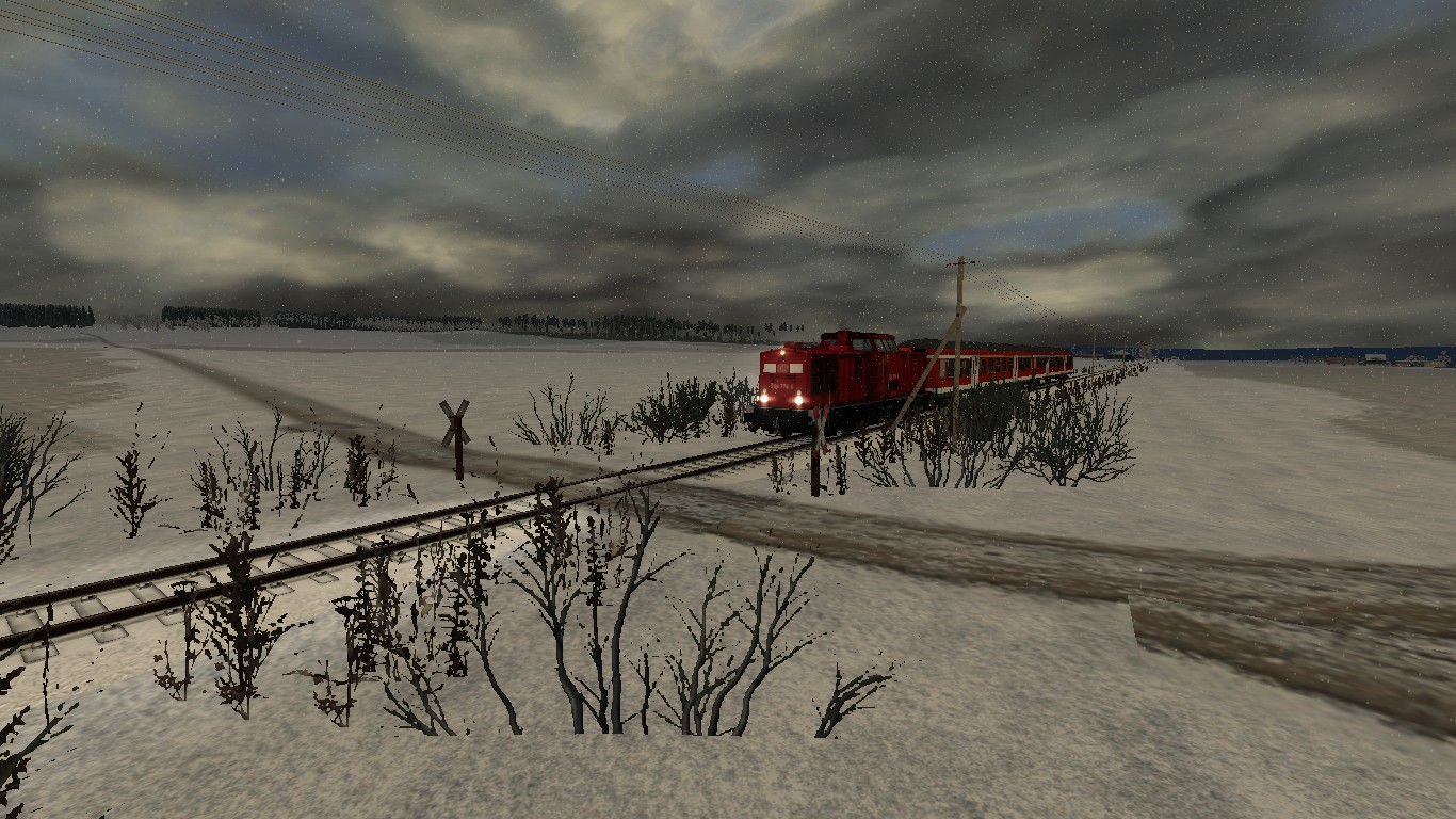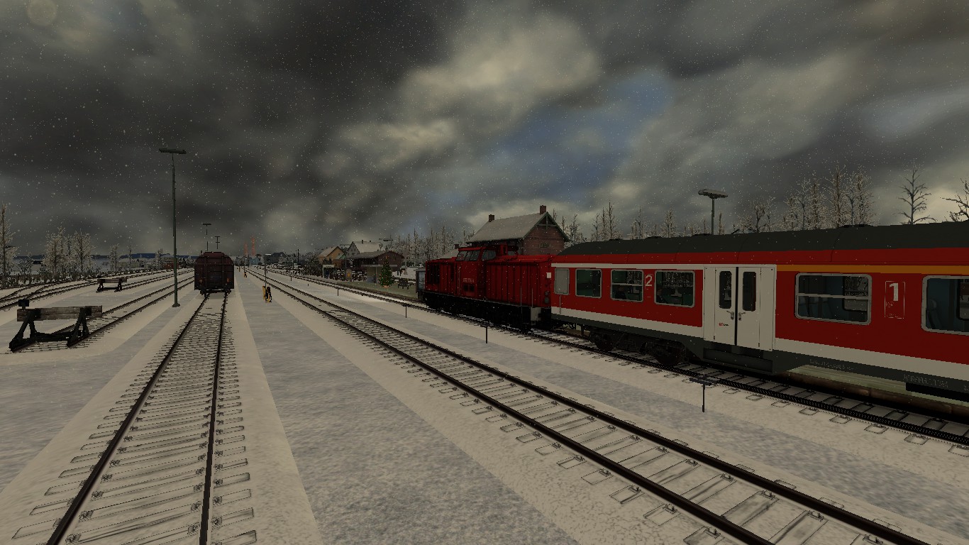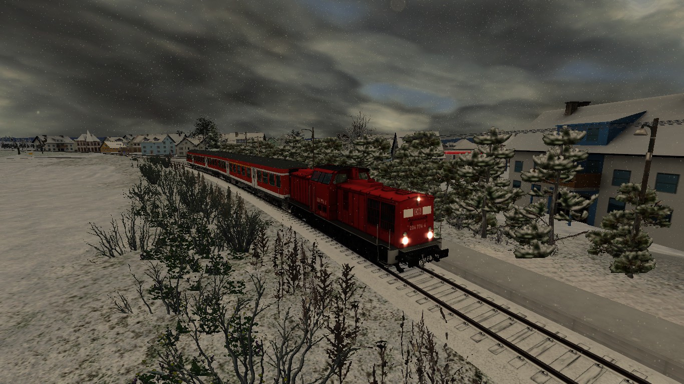 Du fährst heute an einem winterlichen Dezember Tag die 2-Stunden Takt Regionalbahn von Hungen nach Friedberg mit 2 alten n-Wagen und einer BR204 Zuglok.