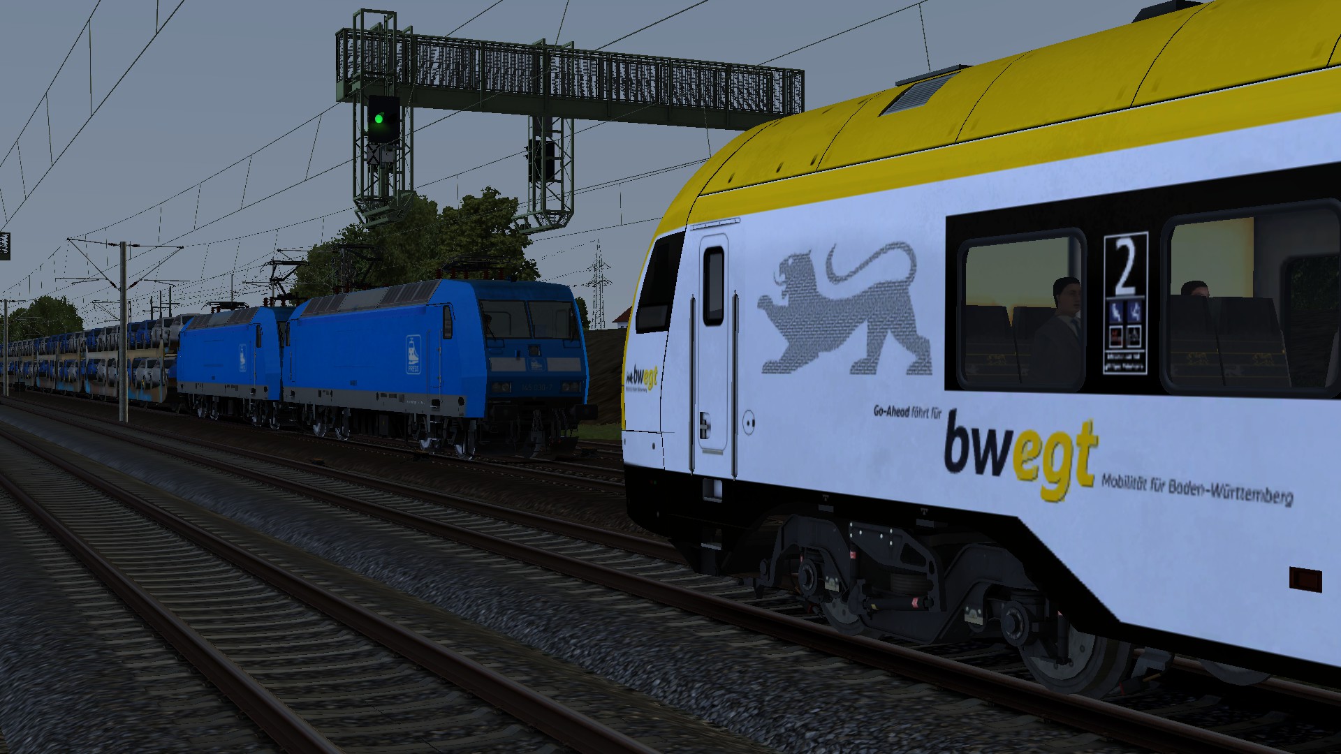 Ich werde dafur nach dem 2ten Halt auf die Regio/Gutergleis umgeleitet und fahre ich auf ein Guterzug drauf,