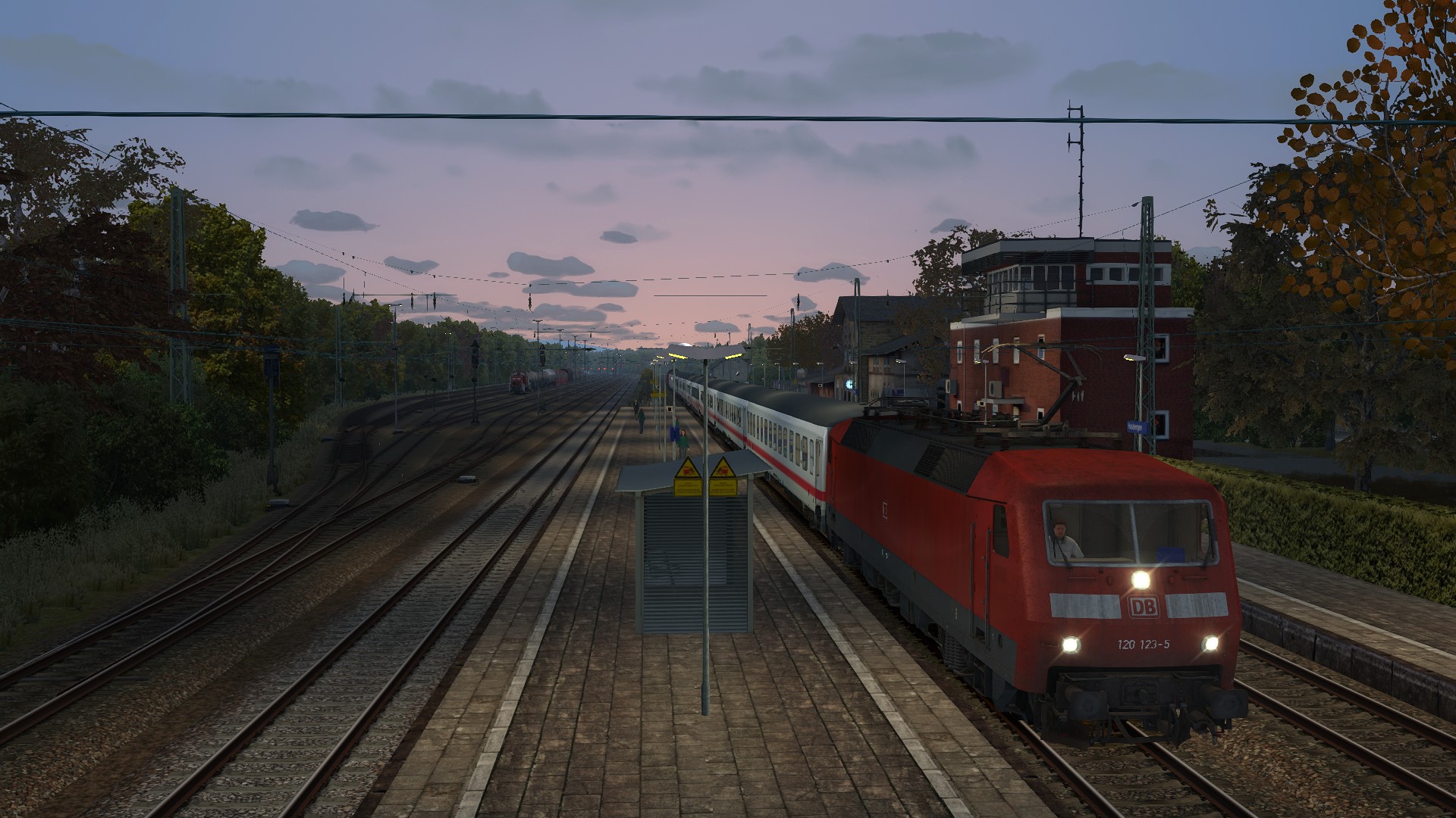 Du fährst an einem Herbstabend den IC 2026, welcher außerplanmäßig im 120er-Sandwhich verkehrt, auf dem Streckenabschnitt von Münster nach Bremen.