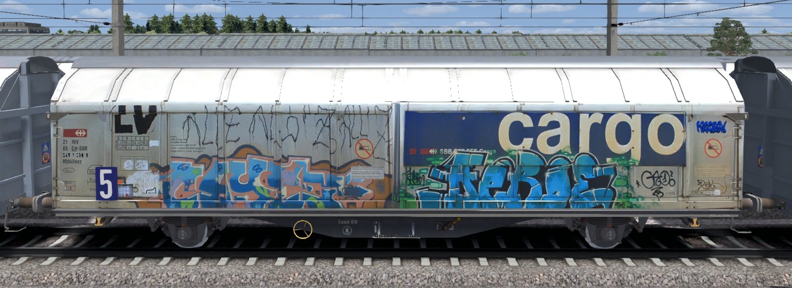 - Güterwagen SBB Hbbillns Graffiti-Repaints von Freeskai. Grundlage / Basis: Güterwagen Hbbillns von der SimTrain SBB Route 1.