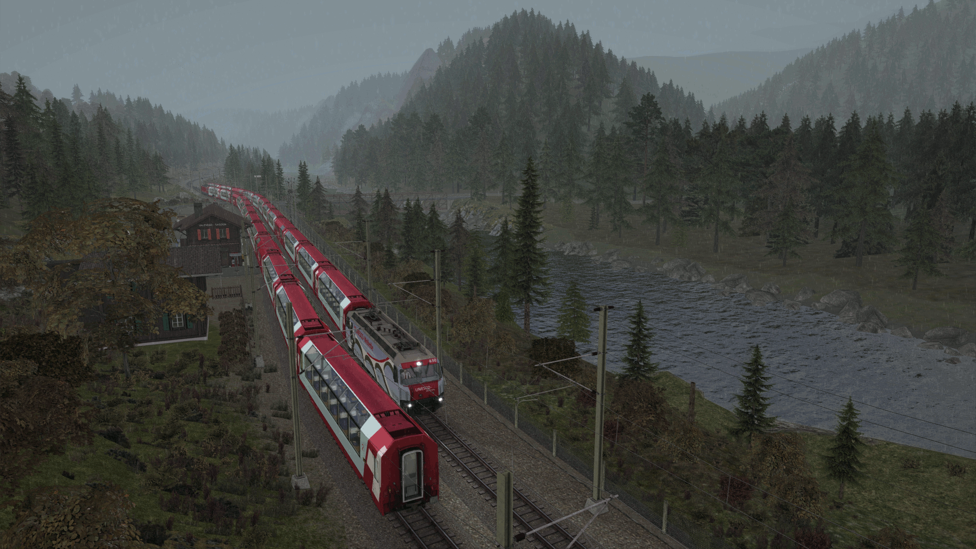 Zeitweise wurden in Disentis/Muster zwei Glacier Express-Kompositionen für die Weiterfahrt nach St. Moritz vereint. Du fährst heute eine solche doppelte Komposition bis nach St. Moritz, in diesem ersten Teil wird der Abschnitt Disentis/Muster bis Reichenau-Tamins befahren. Die Szenario basiert auf dem realen Fahrplan, teilweise wurden jedoch Zeiten und Züge geändert, respektive ergänzt.