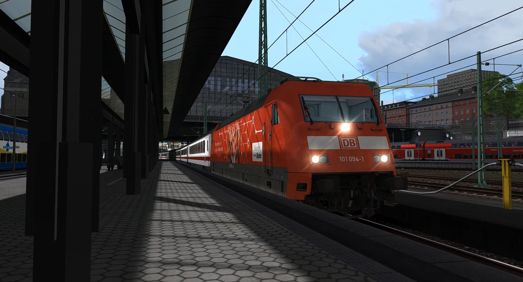 Alle Züge des Nah- und Fernverkehrs verkehren nach dem Fahrplan der DB. Güterzüge wurden fiktiv eingesetzt. ![]()
