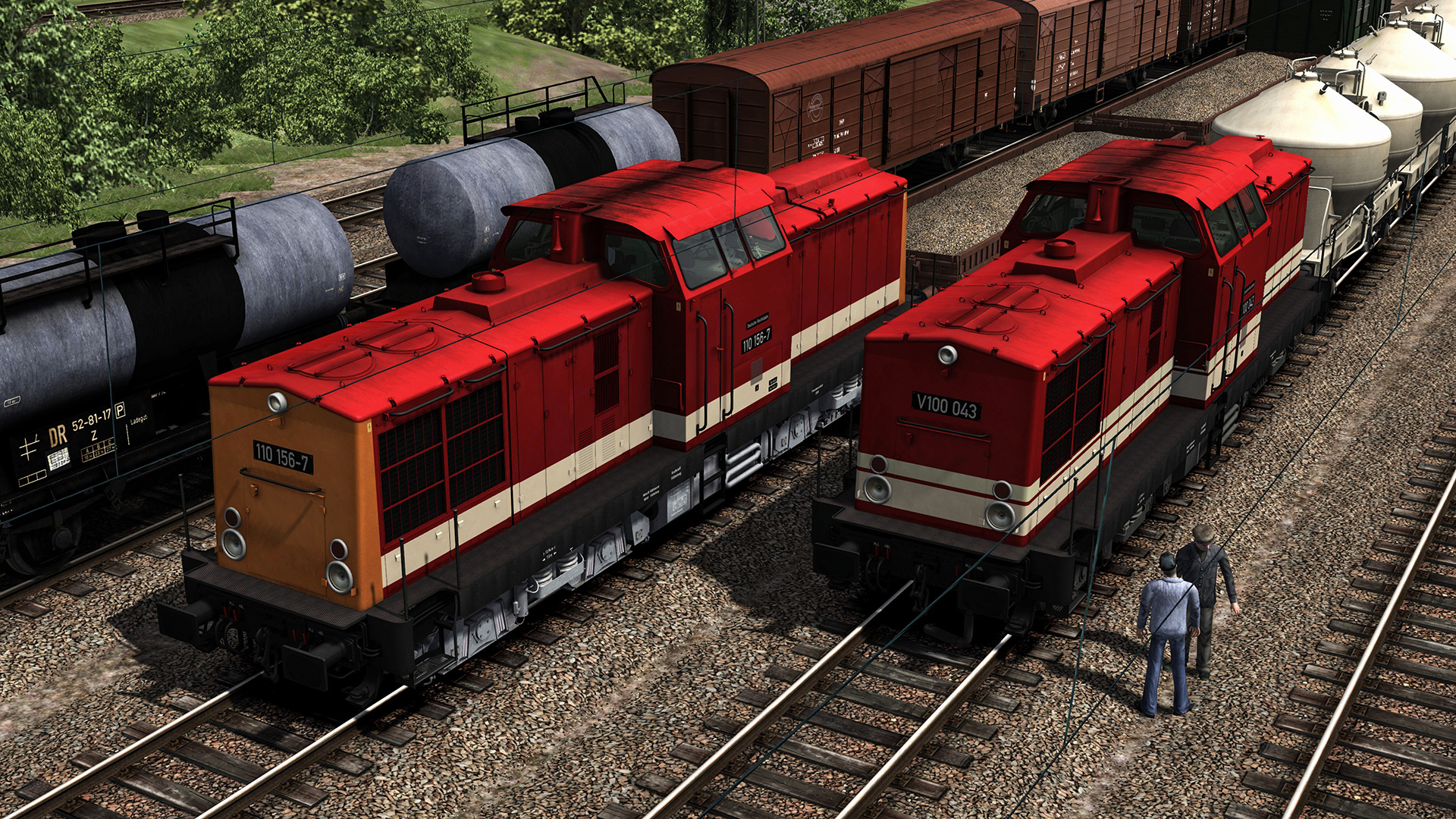 Dieses Paket beinhaltet 22 verschiedene Versionen der V100 der Deutschen Reichsbahn. Durch eigene Anbauten wie geschlossener Rahmen, Lokschilder, Dampfheizungskupplung usw. Annäherung an das damalige Aussehen der V100 bei der Deutschen Reichsbahn von 1964 bis 1992. Von der V100 mit doppeltem Zierstreifen bis zur Erprobungslok für hydrodynamische Getriebe mit gelben Fronten, oder einer FDJ Jugendbrigadelok ist auch hier das ein oder andere Unikat zu finden.