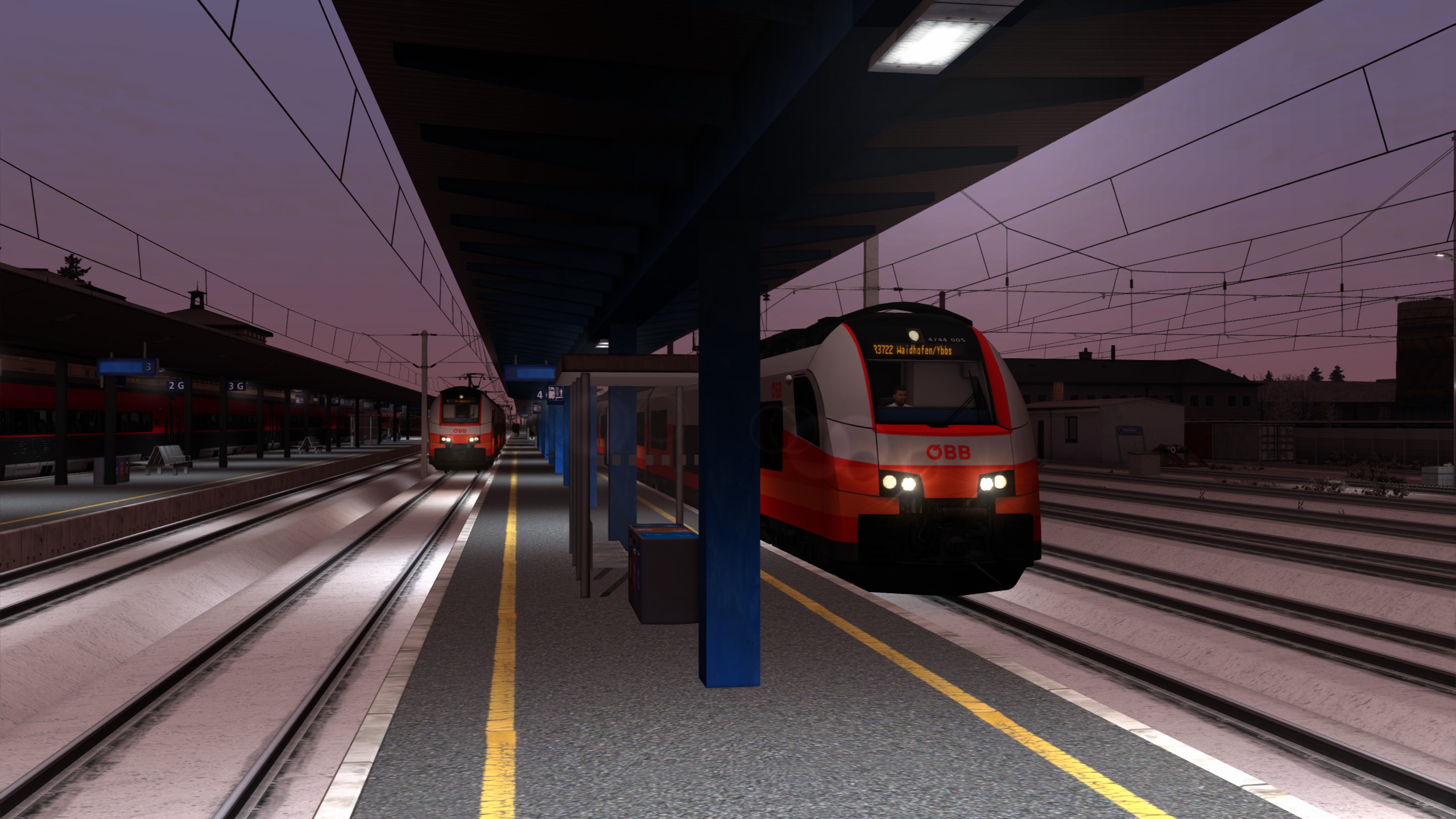 An einem Winterabend fährst du den Regionalzug 3722 von Amstetten nach Waidhofen an der Ybbs.