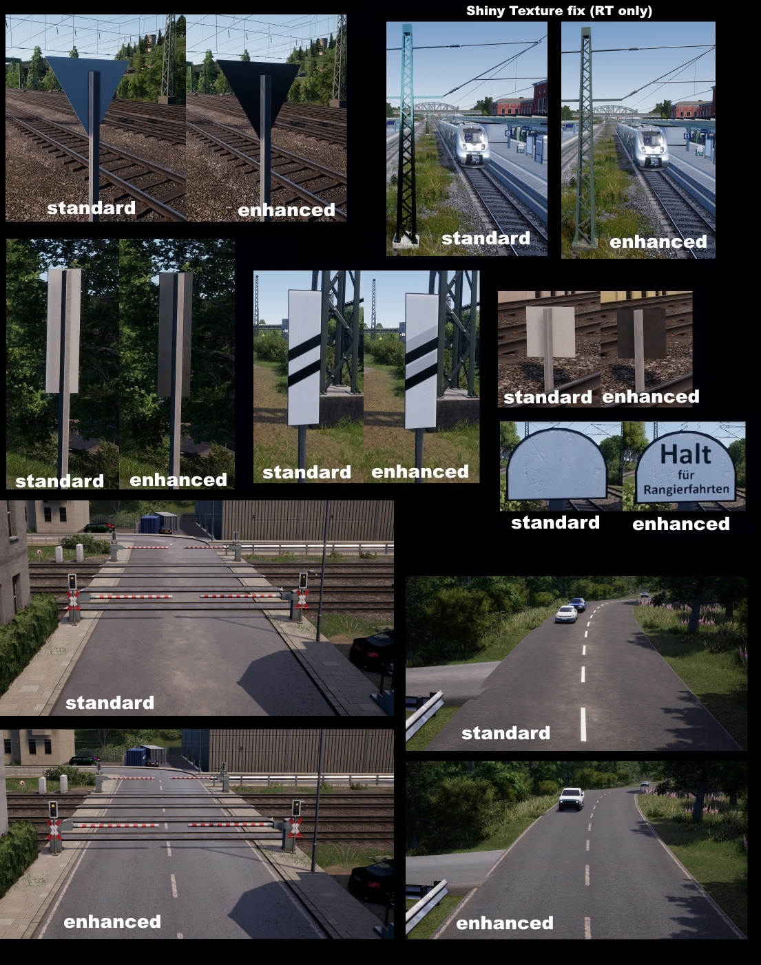 Insgesamt wurden über 80 Texturen verschönert, ausgetauscht oder mit Markennamen versehen, die oben angegebene Liste gilt für alle deutsche Strecken.