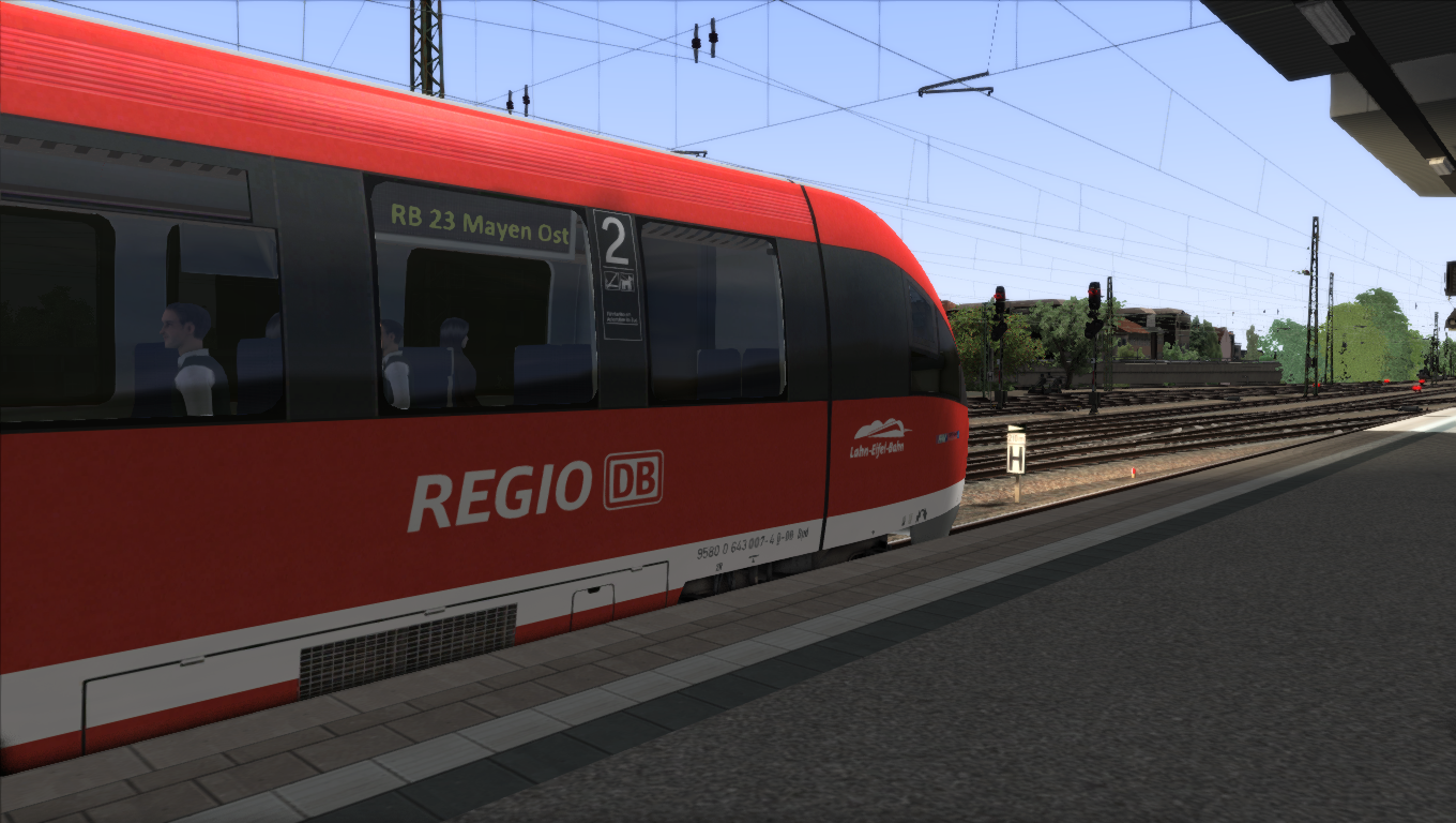 Die Lahn-Eifel-Bahn setzt auf ihren Linien RB23 (Limburg(Lahn)-Koblenz Hbf-Andernach-Mayen Ost), RB38 (Andernach-Mayen Ost-Kaiseresch) und RE25 (Koblenz Hbf-Limburg(Lahn)-Gießen) die Dieseltriebzüge der Baureihen 640, 643 und 648 ein. Mit diesem Repaint erhaltet ihr eines dieser drei Züge, um sie ordnungsgemäß zu fahren oder als KI-Verkehr zu benutzen. Die beiden anderen Repaints für die Baureihen 640 und 648 wurden auch von mir erstellt und sind im Rail-Sim-Forum unter der jeweiligen Kategorie zu finden.