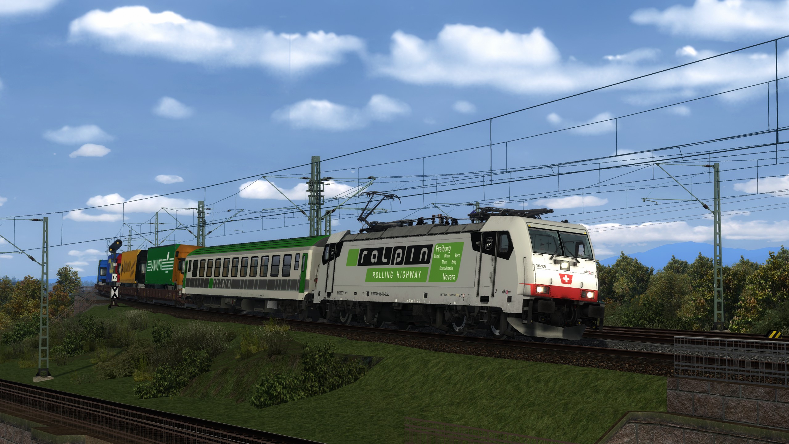 du fährst heute einen Zug der rollenden Landstraße von Freiburg nach Novara auf dem Abschnitt Freiburg-Basel. Unterwegs ist einiges los. Die Vmax deines Zuges sind 100 Km/h. Gute Fahrt.