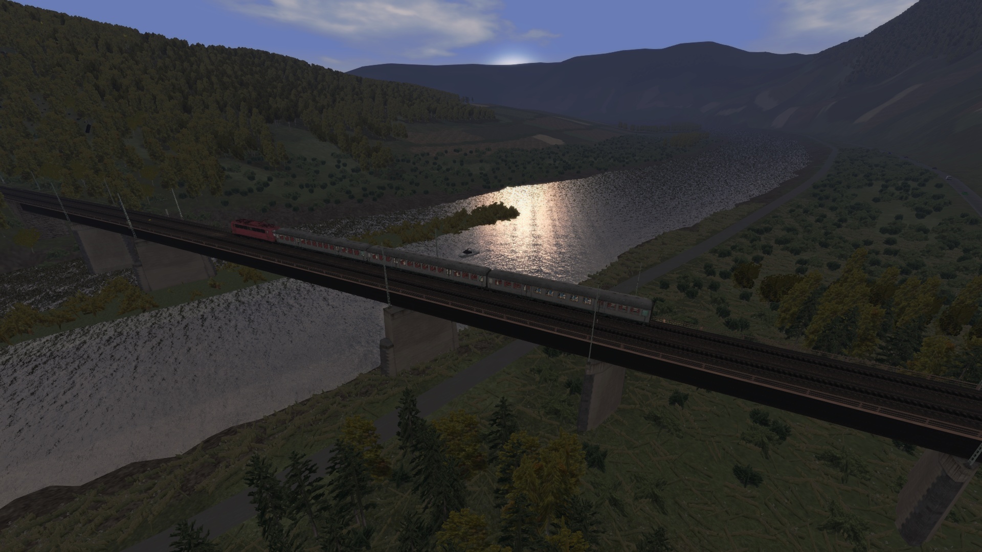 Zu Beginn der Aufgabe musst du deine Lok komplett aufrüsten und die Fahrgäste einsteigen lassen. Abfahrt aus Gleis 9 ist um 17:33 Uhr. Genieße die Fahrt auf dieser herrlichen Strecke beim einsetzenden Sonnenuntergang und bringe deine Fahrgäste sicher ans Ziel.